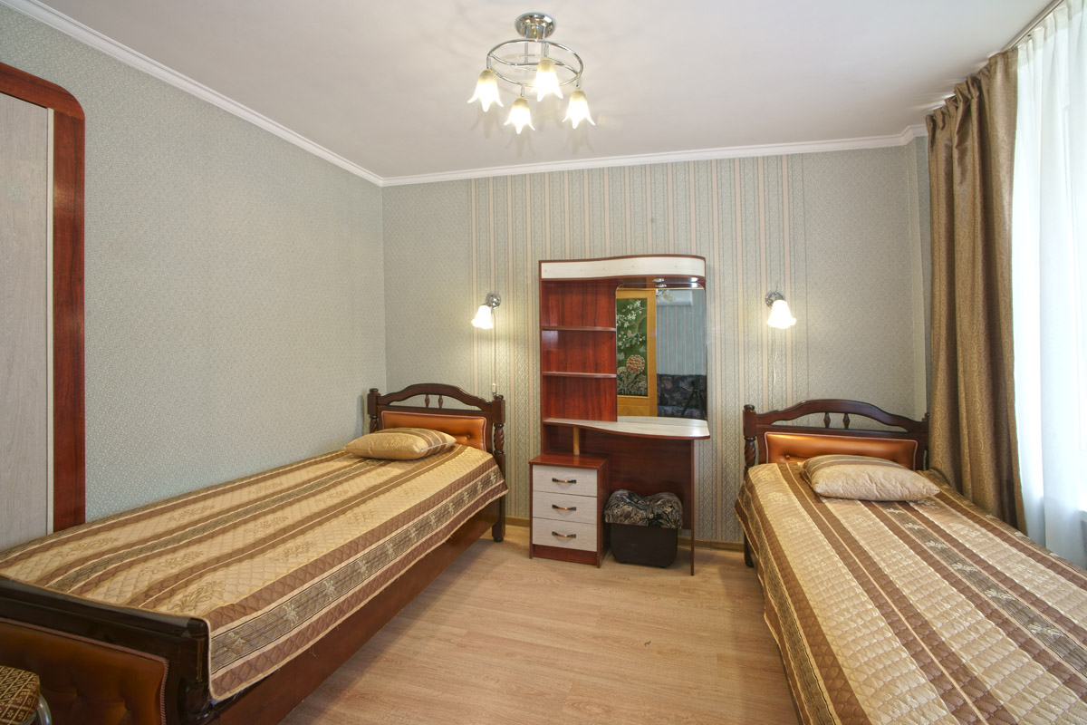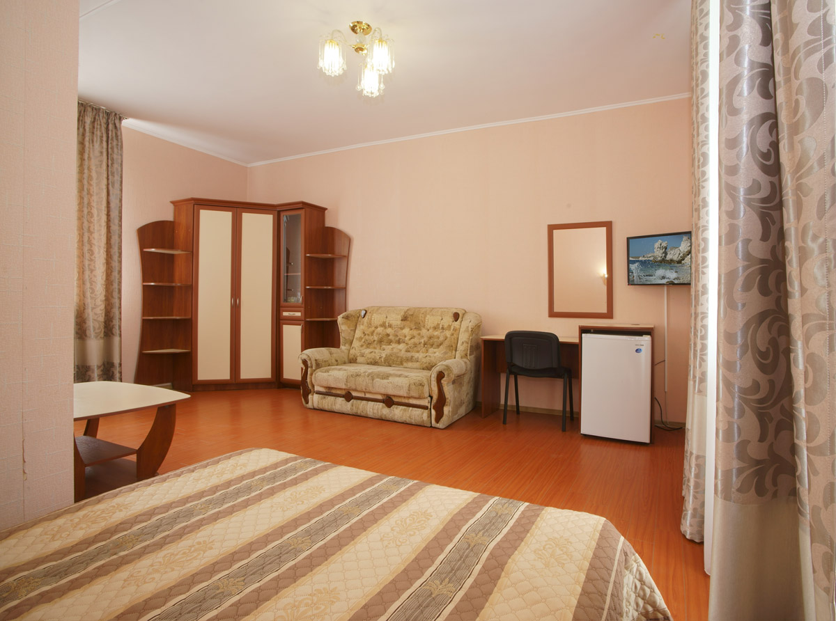 - 2-местный 2-комнатный, корпус 1, 2. Площадь: 24 кв.м. В номере: гостиная с мягкой мебелью, спальня с двуспальной кроватью или двумя односпальными, холодильник, кондиционер, телевизор, санузел с душем, балкон. Дополнительное место - 2.