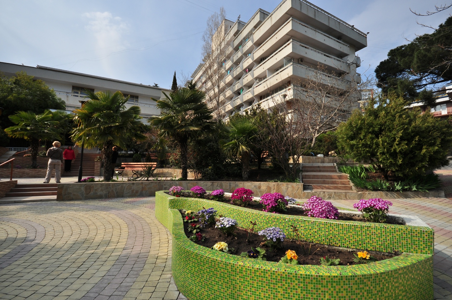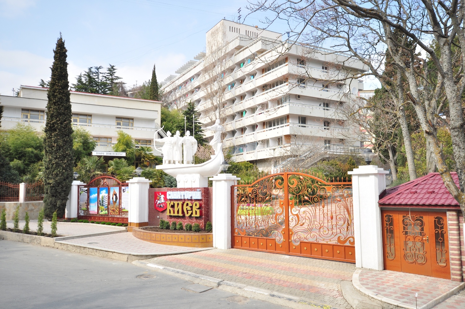 Санаторий Алушты «Киев» расположен в 300 метрах от берега моря, в живописном месте под названием «Профессорский уголок» в городе Алушта.