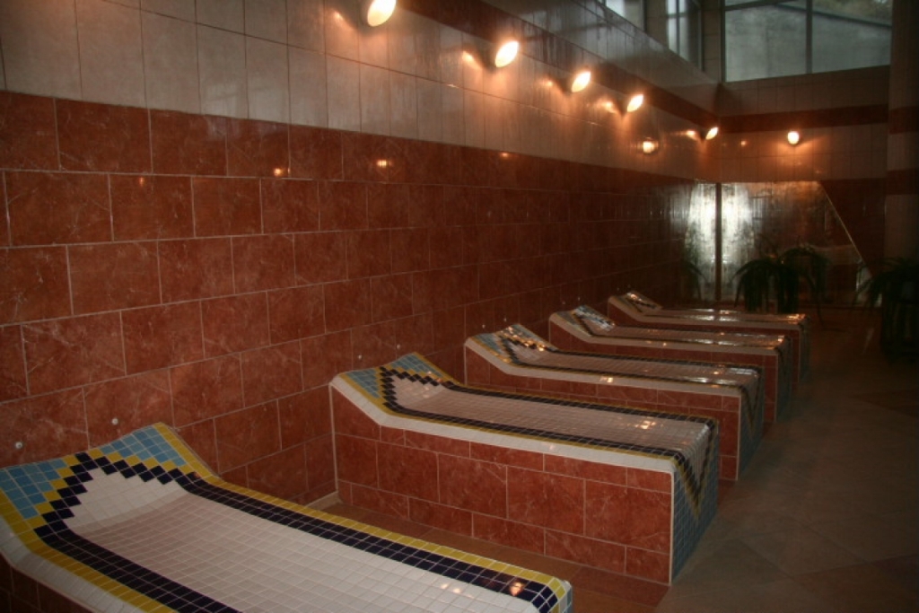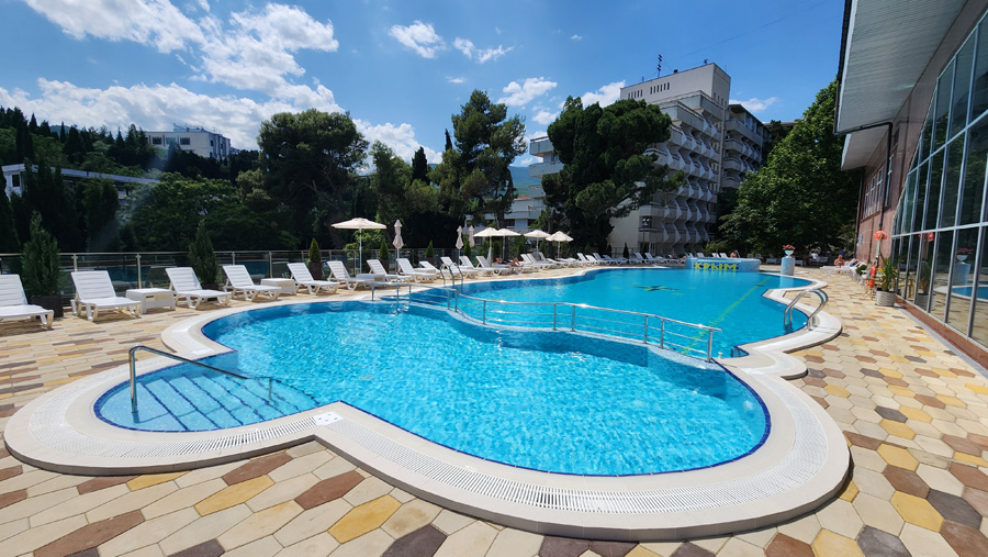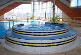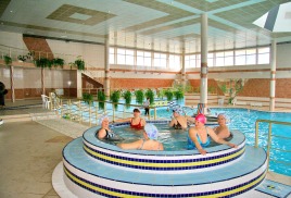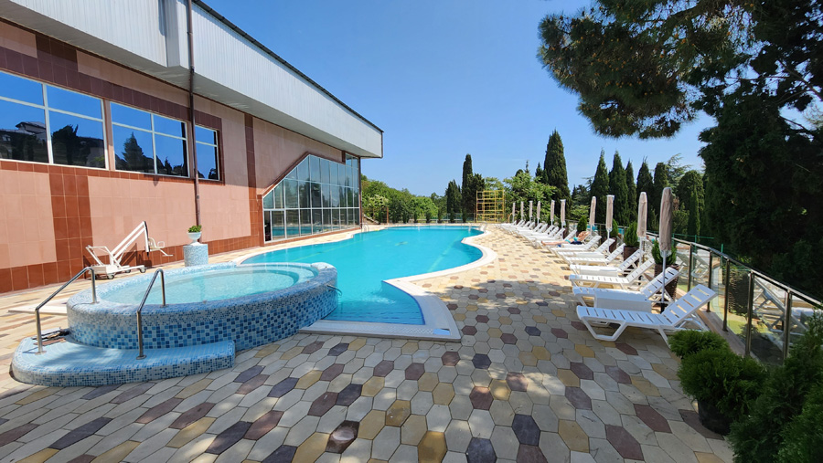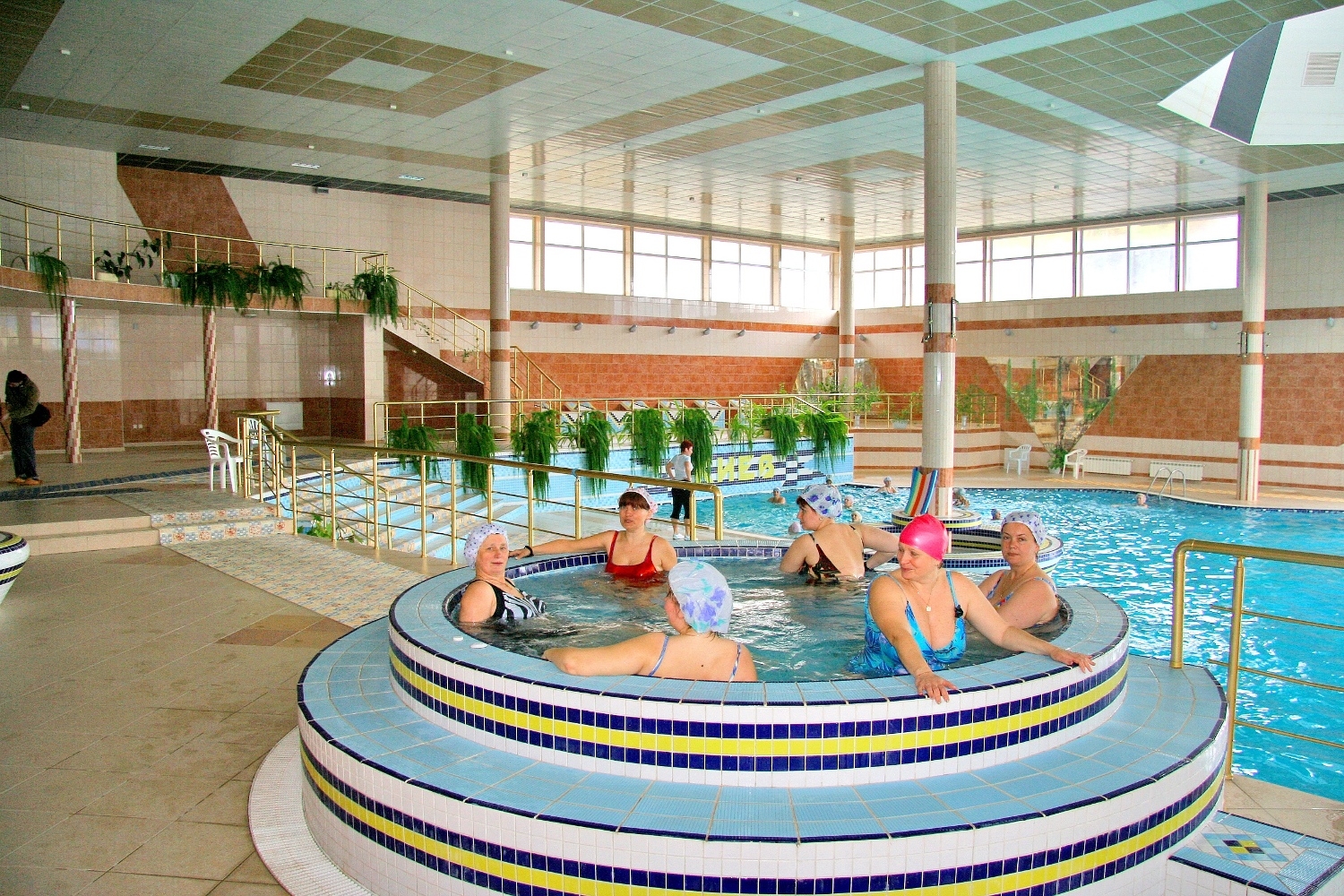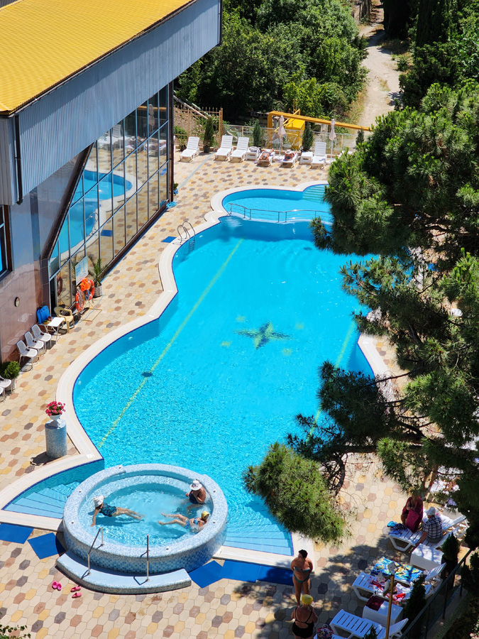 - крытый бассейн с пресной водой (площадь 310 кв.м) с сауной, баней, джакузи, работает в межсезонье (с октября по май)