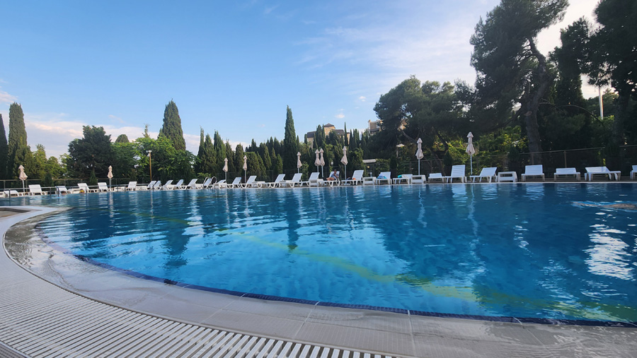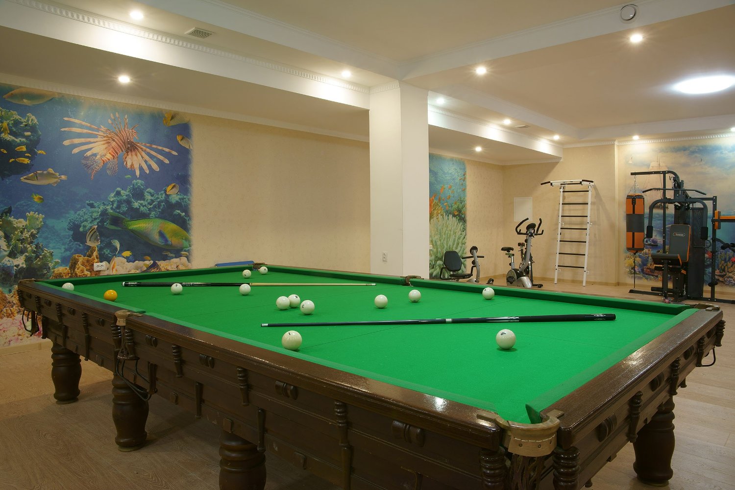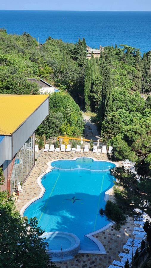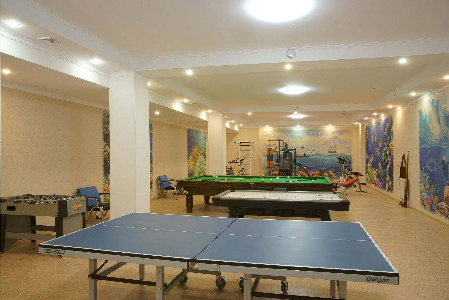 - крытый бассейн с пресной водой (площадь 310 кв.м) с сауной, баней, джакузи, работает в межсезонье (с октября по май)