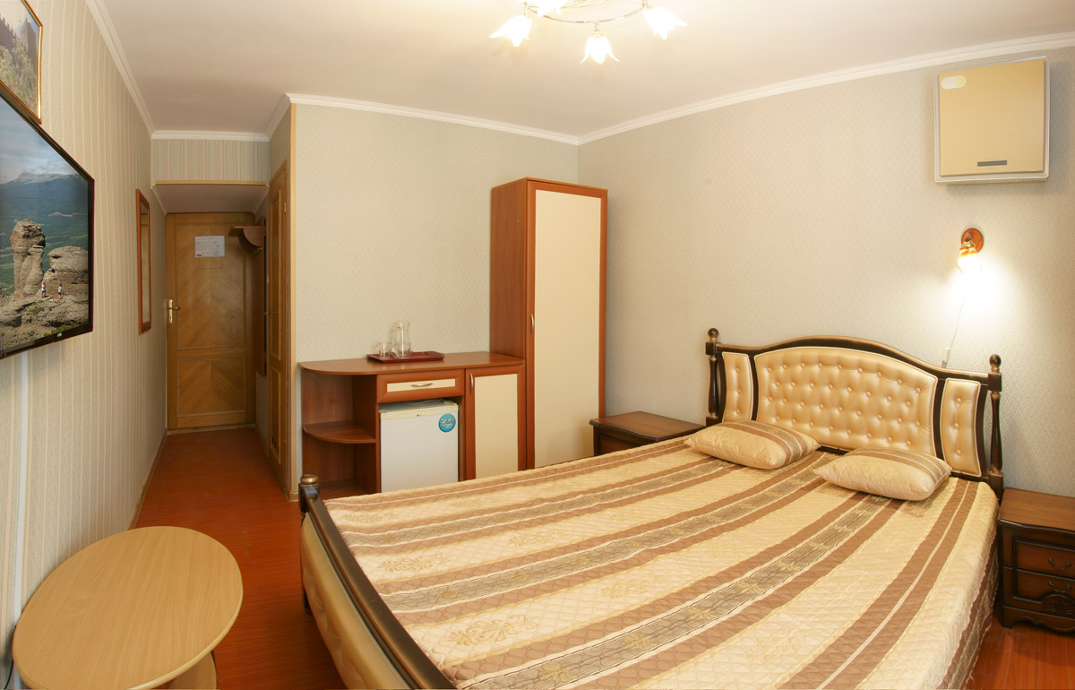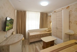 - 2-местный 1-комнатный, корпус № 5. Площадь: 18 кв.м. В номере: двуспальная кровать или две односпальные кровати, телевизор, кондиционер, холодильник, санузел с душем, балкон. Дополнительное место - 1.