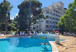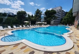 Пляж: собственный мелко-галечный пляж, оборудованный пластиковыми лежаками (входят в стоимость), пляжными зонтиками (за дополнительную плату) расположен на расстоянии 600 м от корпусов. Городской пляж расположен в 300 м от корпусов.