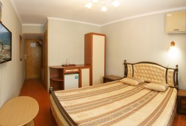 - 1-местный 1-комнатный, корпус 1, 2. Площадь: 12 кв.м. В номере: двуспальная кровать, телевизор, холодильник, кондиционер, санузел с душем, балкон. Дополнительное место не устанавливается.