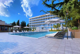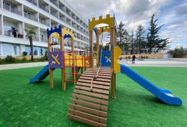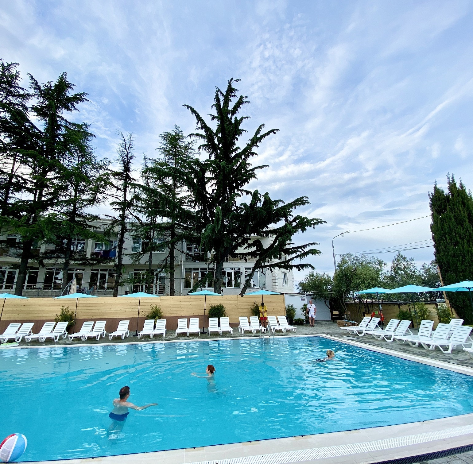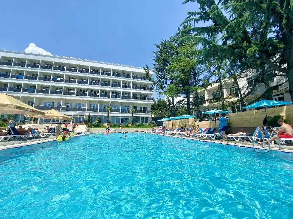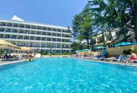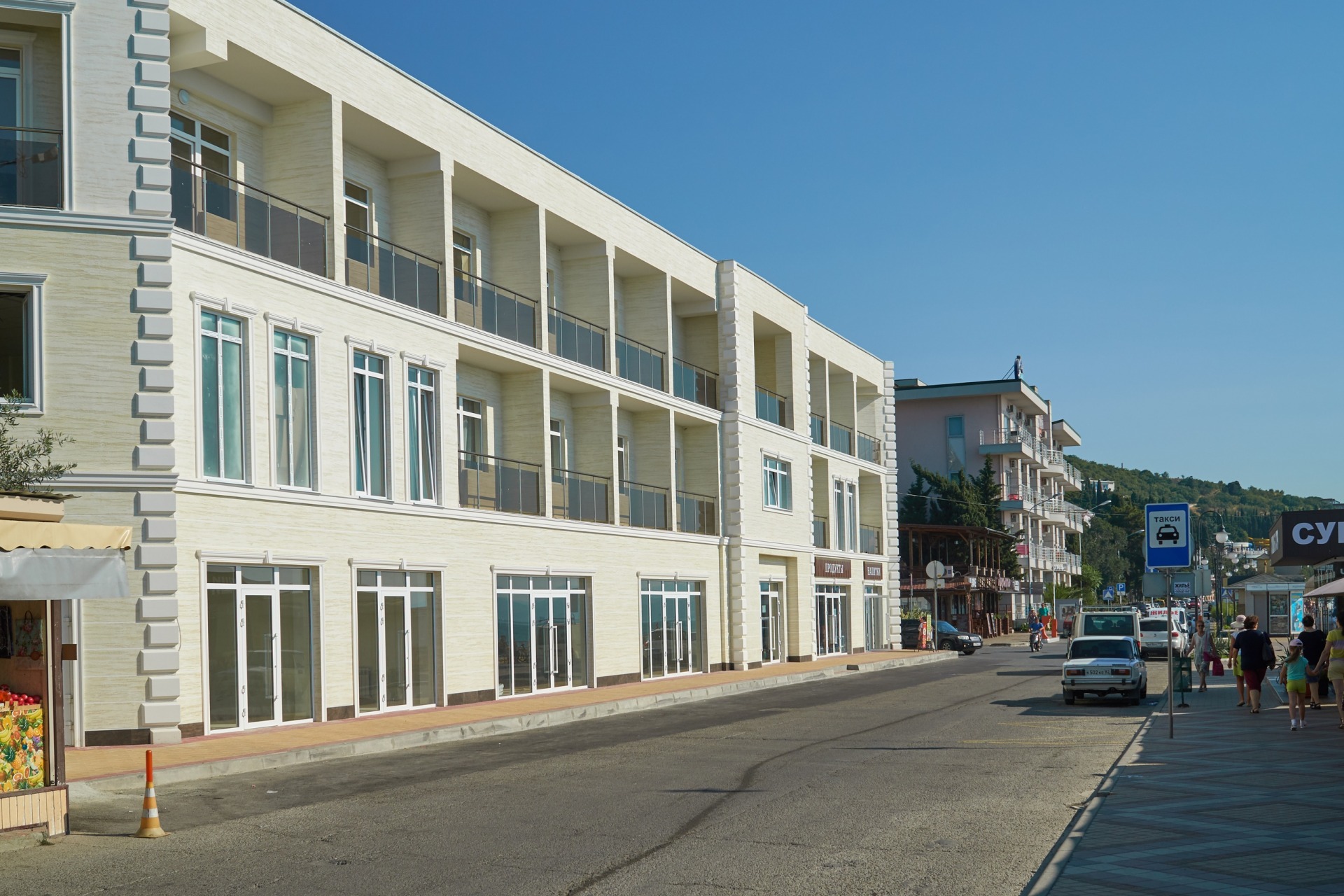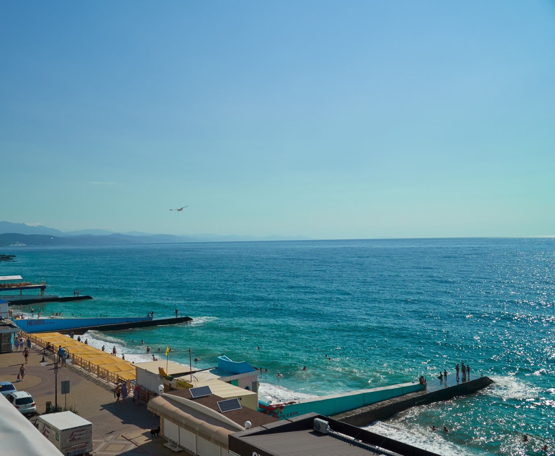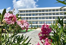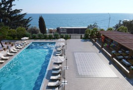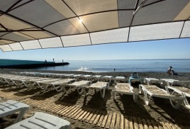 Пляж: городской, мелко-галечный в 10 м от корпуса, оборудован душевыми кабинками, лежаками, навесами (пользование входит в стоимость). Пляжные полотенца выдают в отеле.