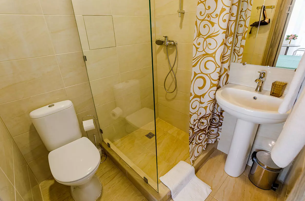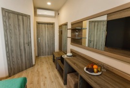 - 2-местный 1-комнатный Полулюкс. Площадь: 25-30 кв.м. В номере: две односпальные кровати или одна двуспальная кровать, кондиционер, телевизор, холодильник, чайник с набором посуды, сейф, санузел с душем. Номера есть с балконом и с французским балконом (не гарантируется). Дополнительное место - диван и еврораскладушка