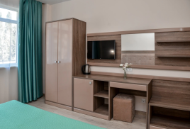 - 2-местный 1-комнатный Стандарт без балкона. Площадь: 16 кв.м. В номере: две односпальные кровати или одна двуспальная кровать, кондиционер, телевизор, холодильник, чайник с набором посуды, сейф, санузел с душем. Номер без балкона с видом на зеленый парк. Дополнительно место не устанавливается.