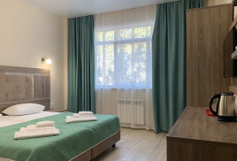 - 2-местный 1-комнатный Комфорт. Площадь: 16-30 кв.м. В номере: две односпальные кровати или одна двуспальная кровать, кондиционер, телевизор, холодильник, чайник с набором посуды, сейф, санузел с душем. Номер с балконом и видом на территорию. Дополнительное место - еврораскладушка или диван.