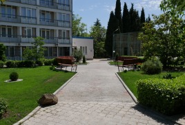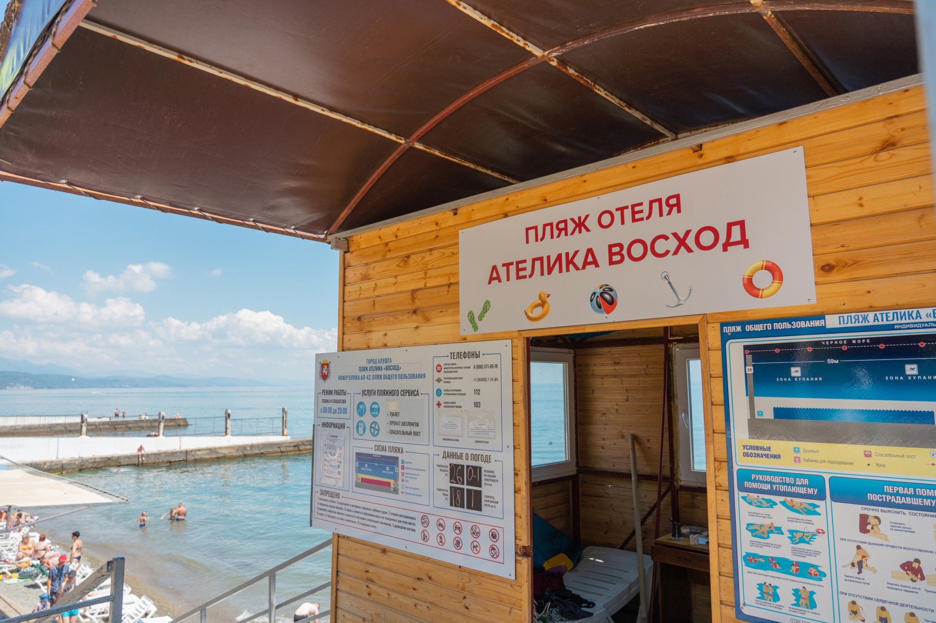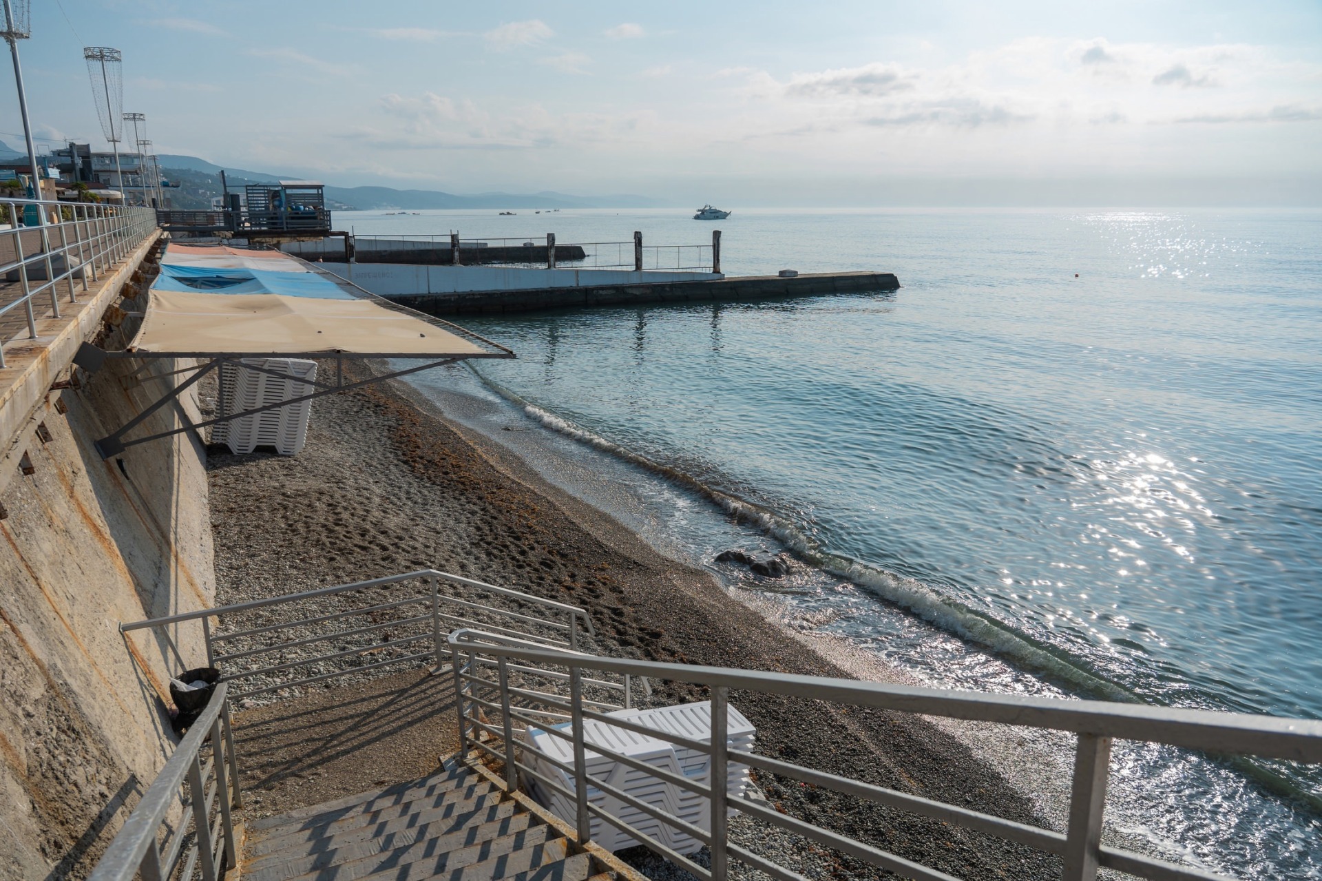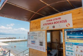 Пляж: 800 м от корпуса собственный галечный, пропускная система, протяженность 60 м. На пляже бесплатно: раздевалки, теневые навесы, деревянные лежаки, душ. Предоставляются пляжные полотенца.
