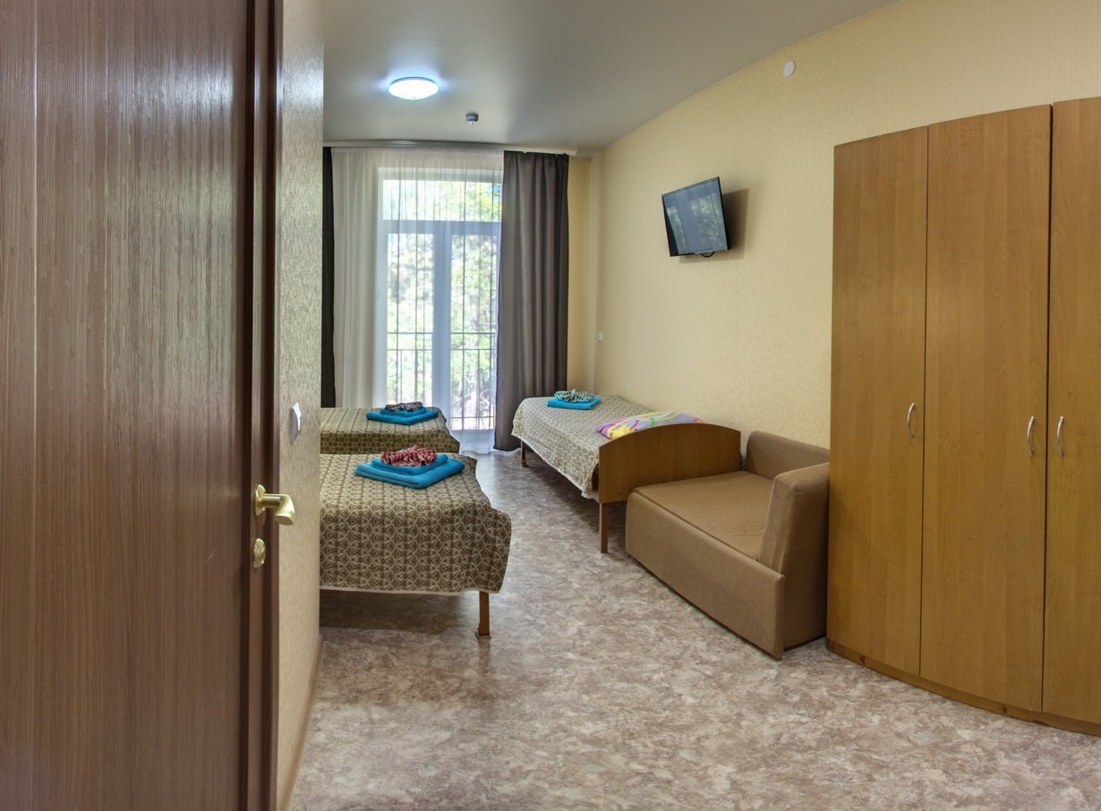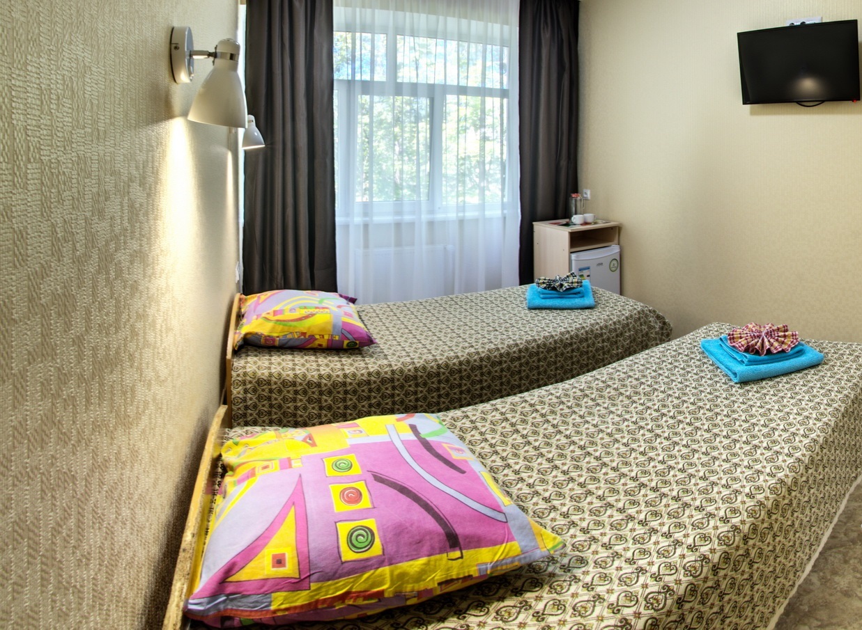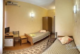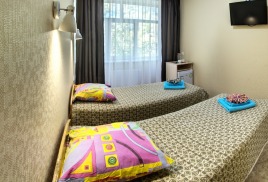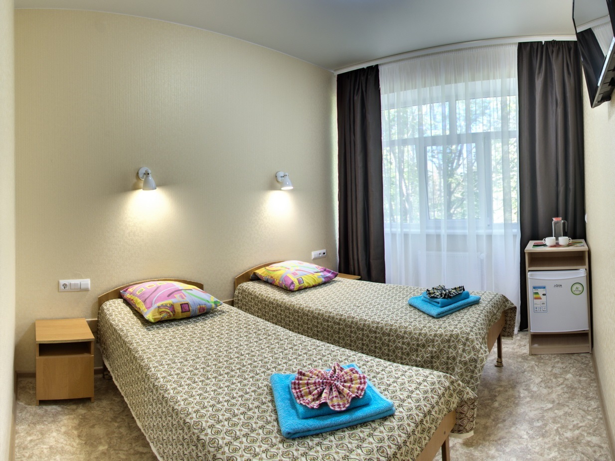 - 2,3-х местный стандарт плюс, корпус №5,6 (12-15 кв.м.): две/три односпальные кровати, кондиционер, телевизор, холодильник, санузел и душ в номере.