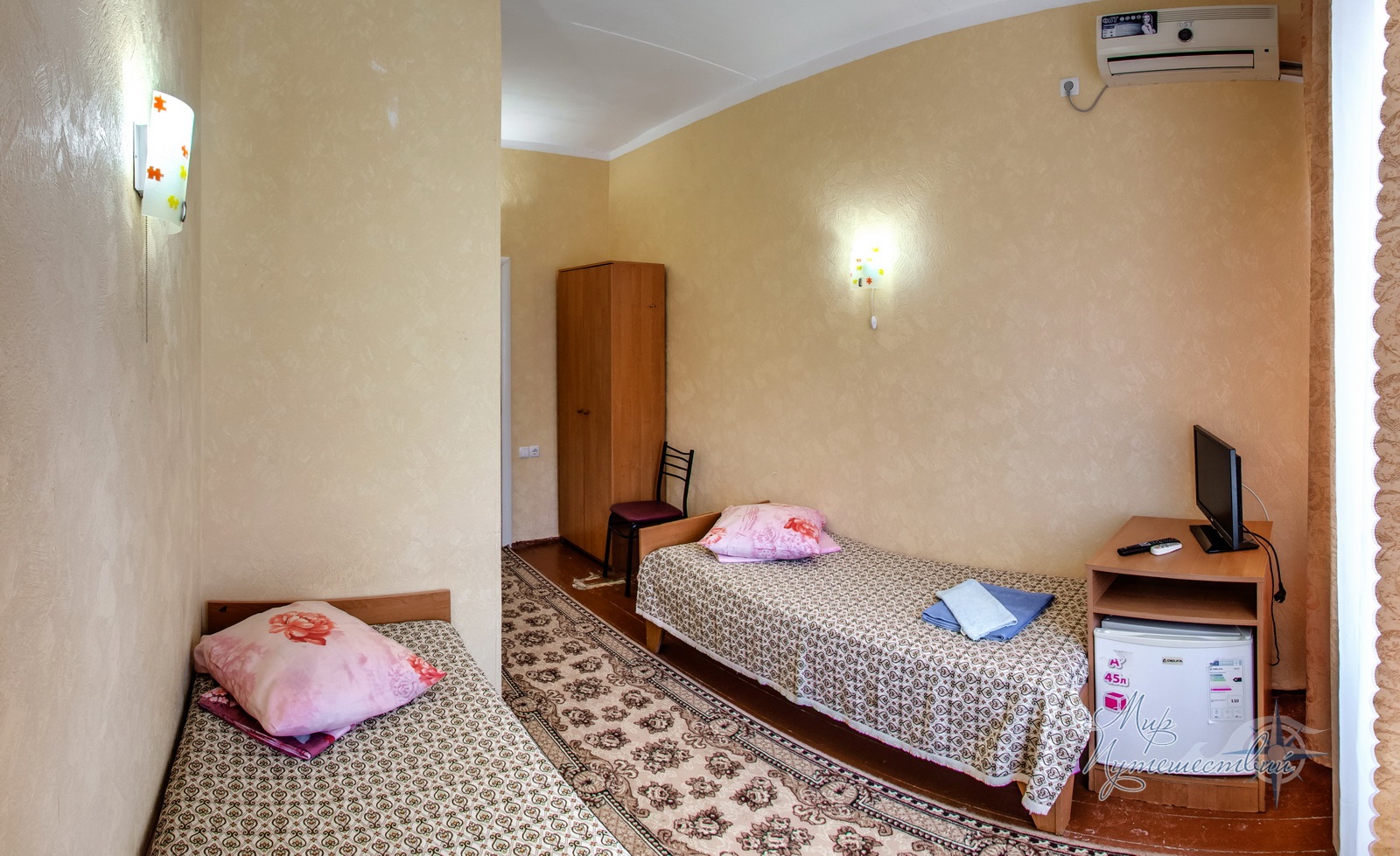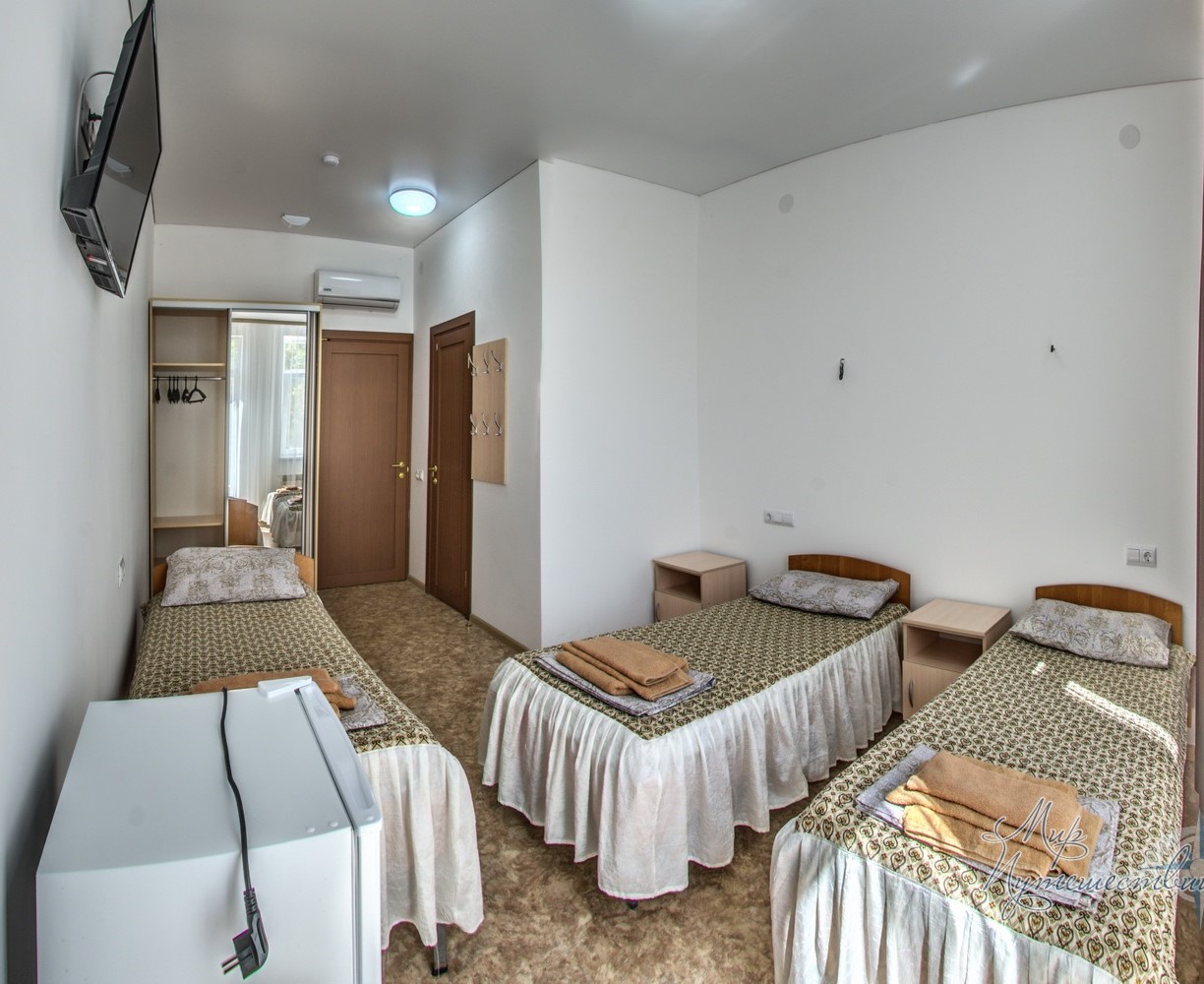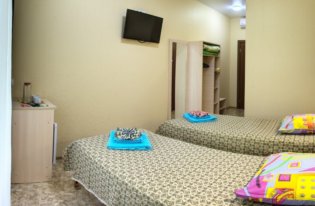 - 2,3-х местный стандарт плюс, корпус №5,6 (12-15 кв.м.): две/три односпальные кровати, кондиционер, телевизор, холодильник, санузел и душ в номере.
