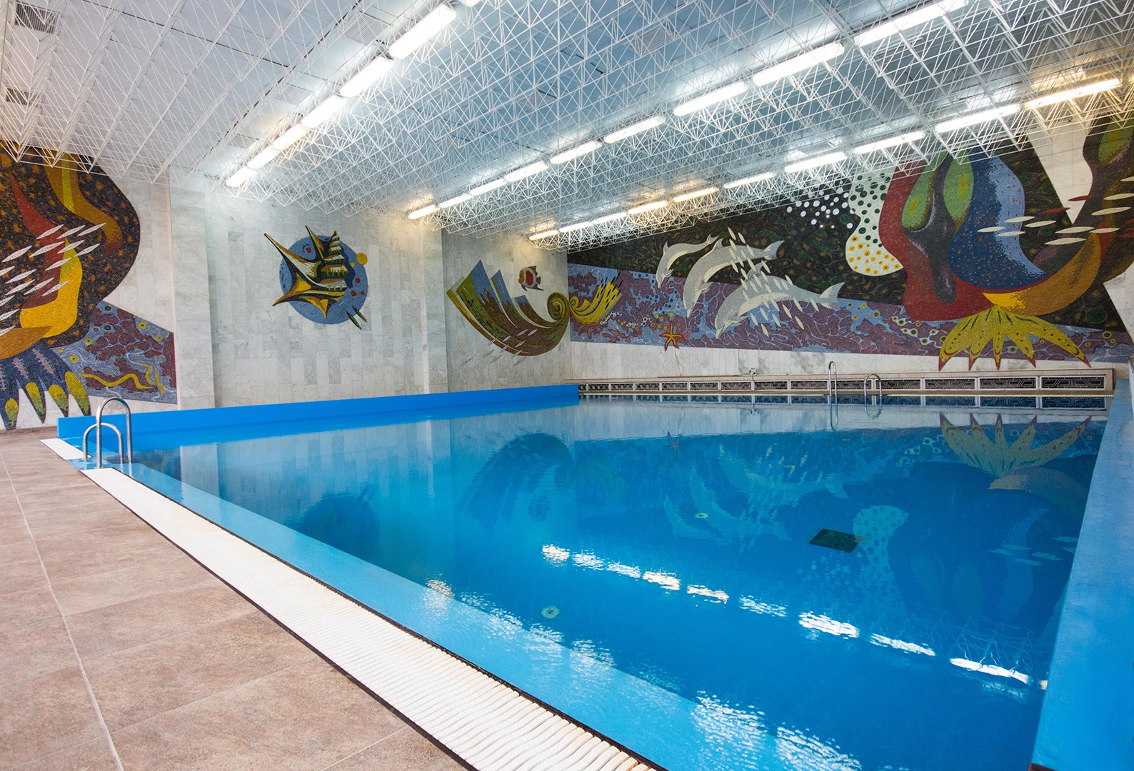 - бассейн крытый с пресной водой, размер 12х12 м, глубина от 0,9 до 1,80 метров, (работает в межсезонье)