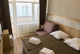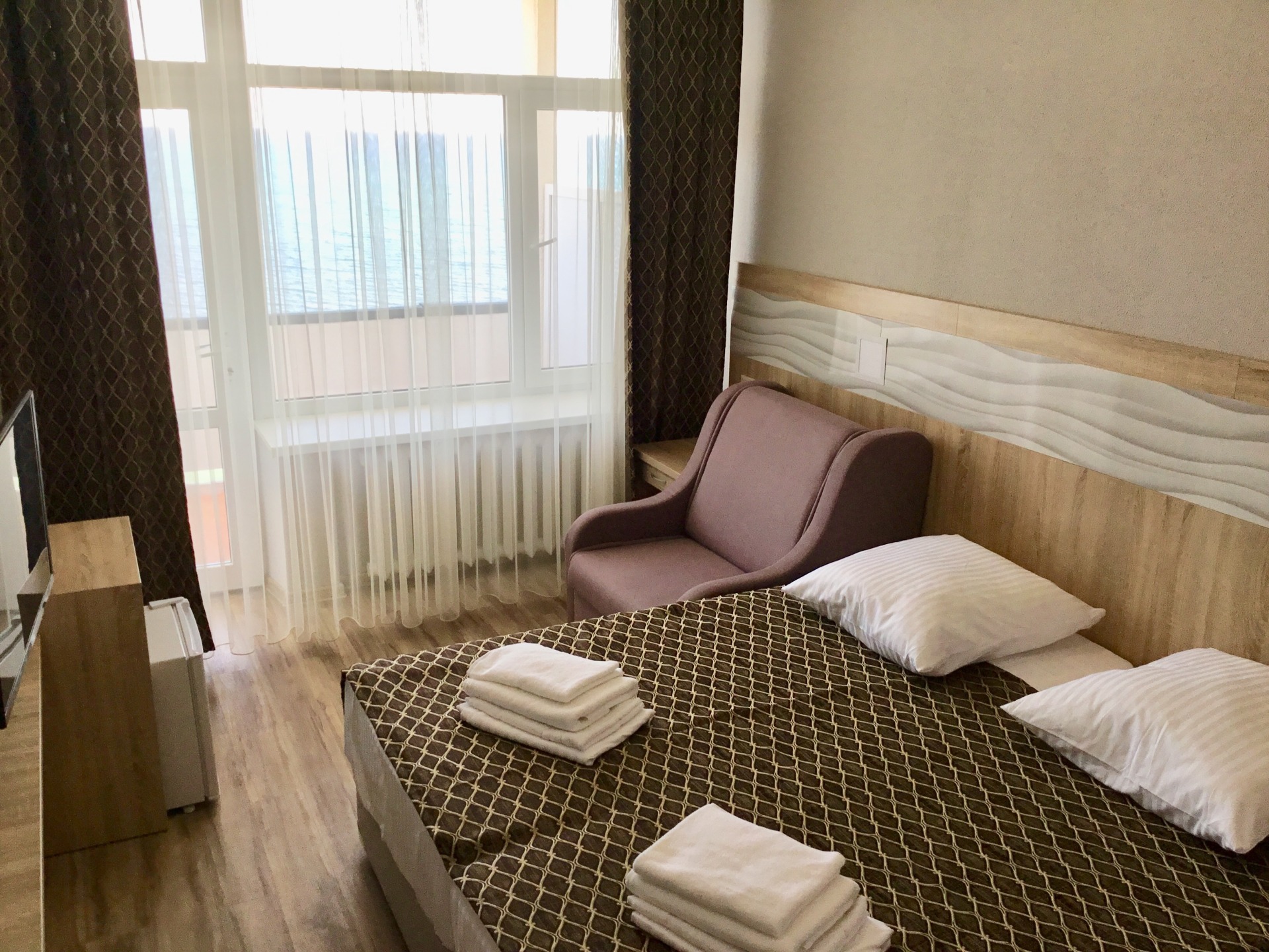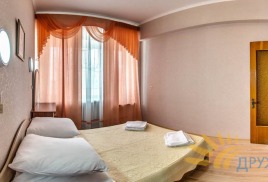 - 2-местный 1-комнатный комфорт юг/север. Корпус № 7 (7, 8, 9 этаж). Площадь: 12 - 14 кв. м. В номере: две односпальные кровати, раскладное кресло-кровать, телевизор, холодильник, кондиционер, санузел с душем, балконом.
