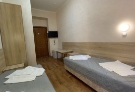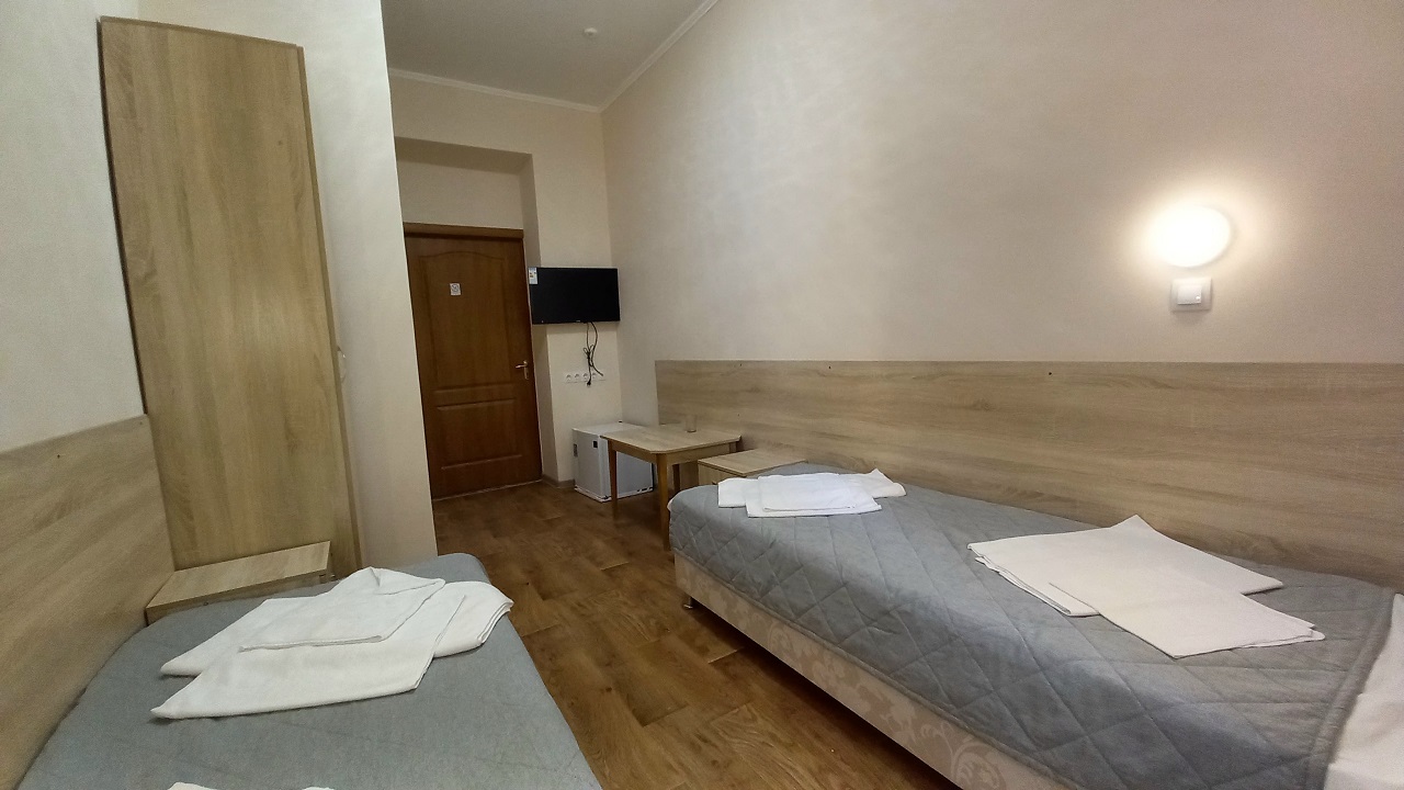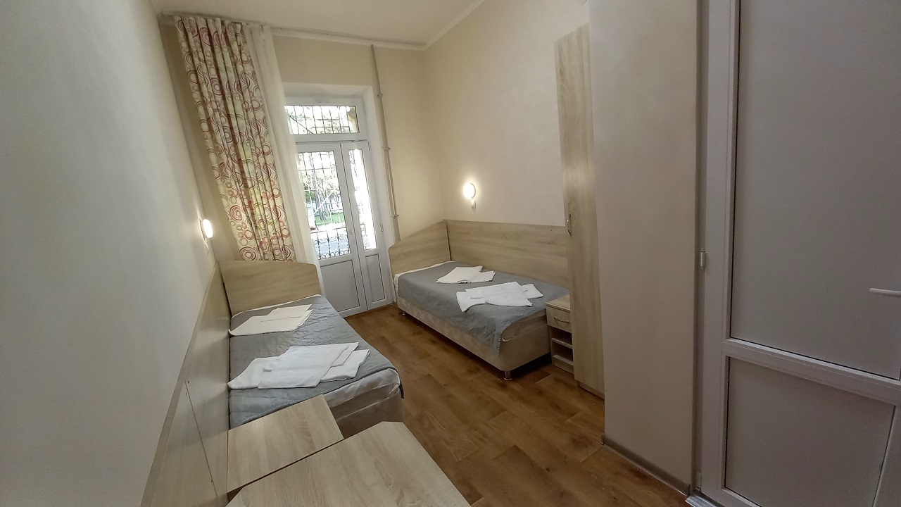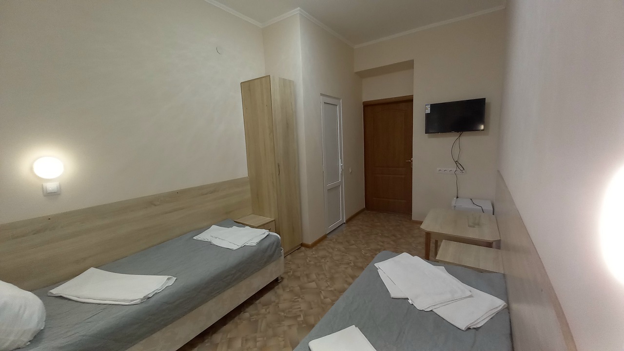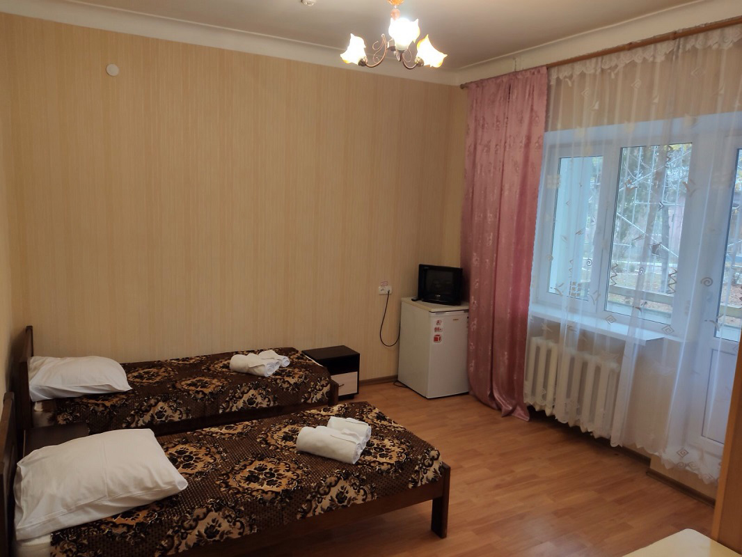 - 2-местный 1-комнатный эконом. Корпус № 4. Площадь: 12 кв. м. В номере: две односпальные кровати, телевизор, холодильник, туалет, раковина, балконом. Душ общий на этаже. Дополнительное место не устанавливается.