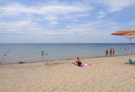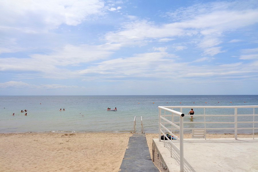 Для комфортного отдыха имеются теневые навесы, душ и кабинки для переодевания. Пляж песчаный, протяженность составляет порядка 1,3 км.