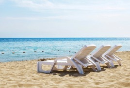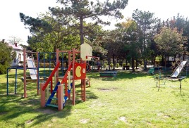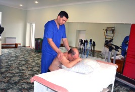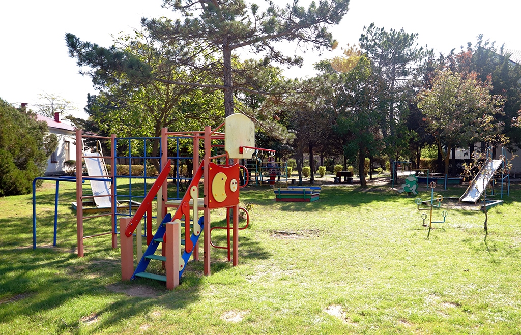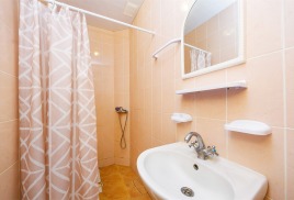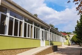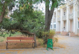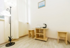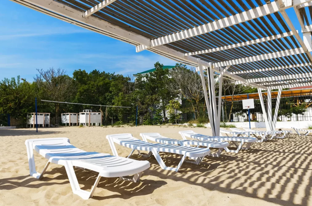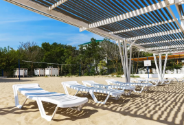 Пляж: собственный песчаный в 550 м от санатория. На пляже: теневые навесы, лежаки, раздевалки, туалет.