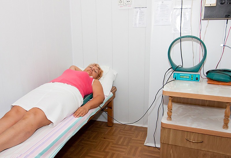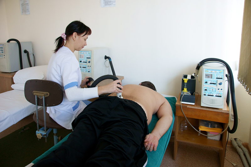 - физиотерапия (магнитотерапия, УВЧ, УЗ, КВЧ, лазеротерапия, ДМВ, СМТ и др.), лазеротерапия, электрогрязелечение, ультрафонофорез, СМТ-форез грязи, ингаляторий