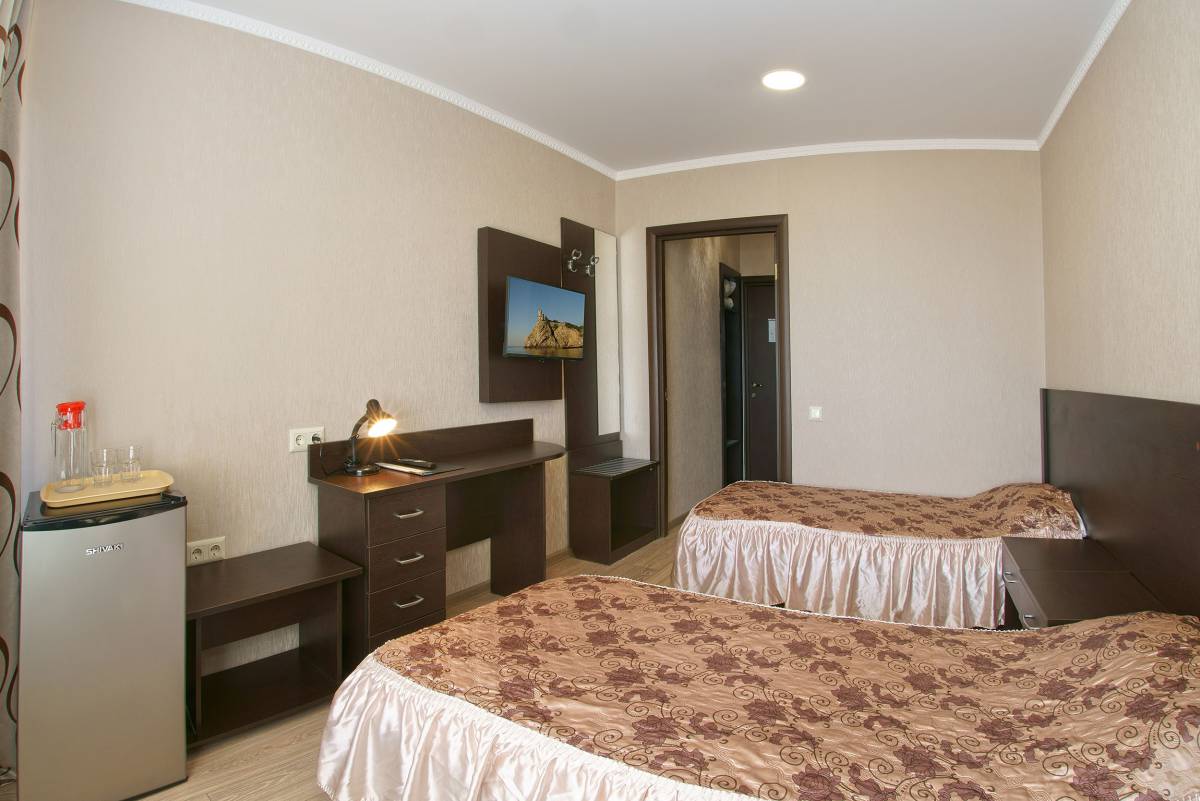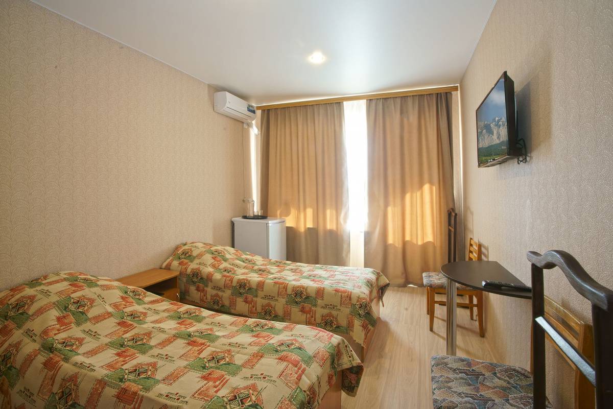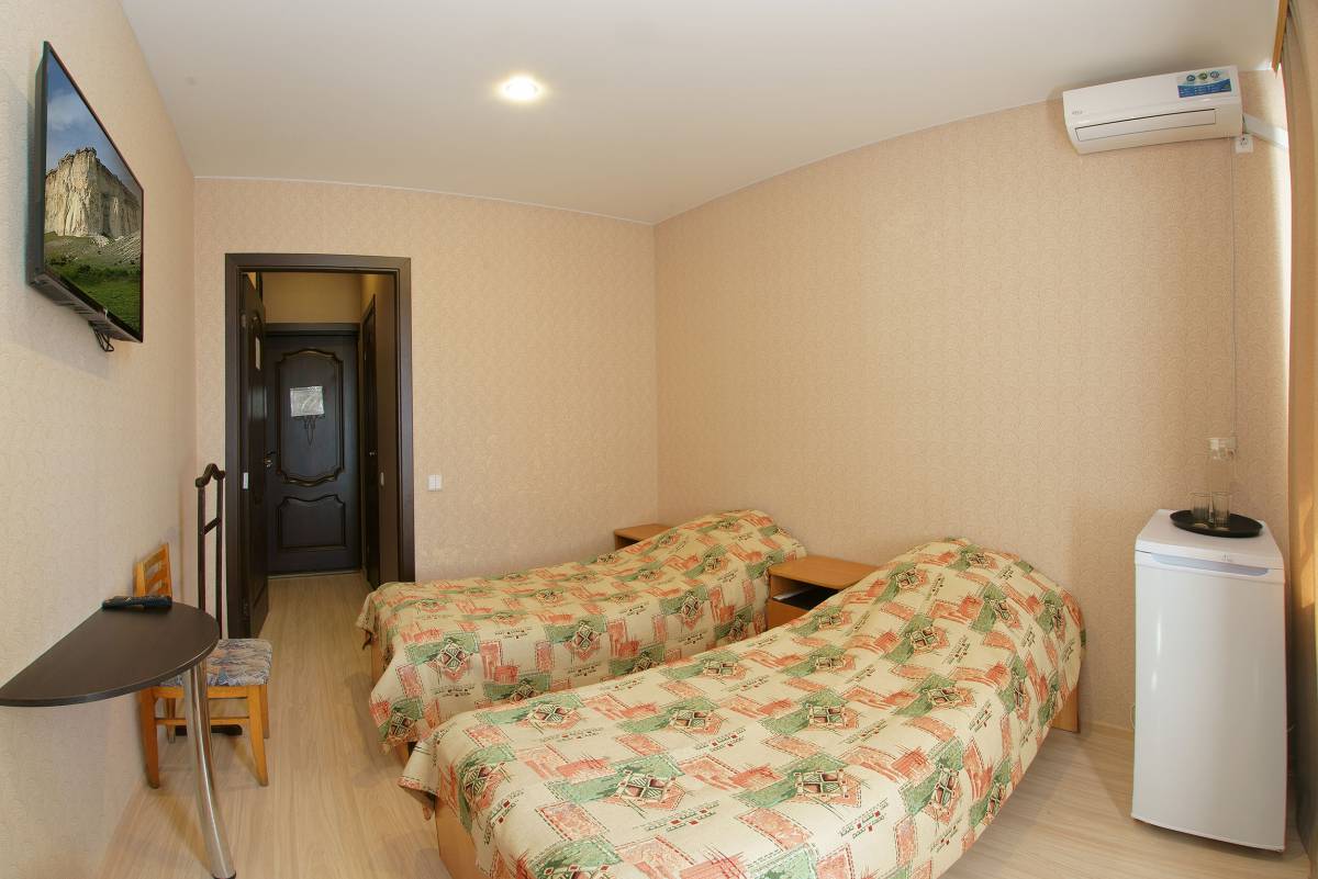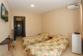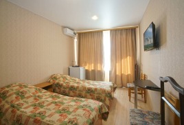 - 2-местный 1-комнатный эконом север/юг. Площадь – 12 кв.м.В номере: две односпальные кровати, телевизор, холодильник, санузел, лоджия с видом на море или город.