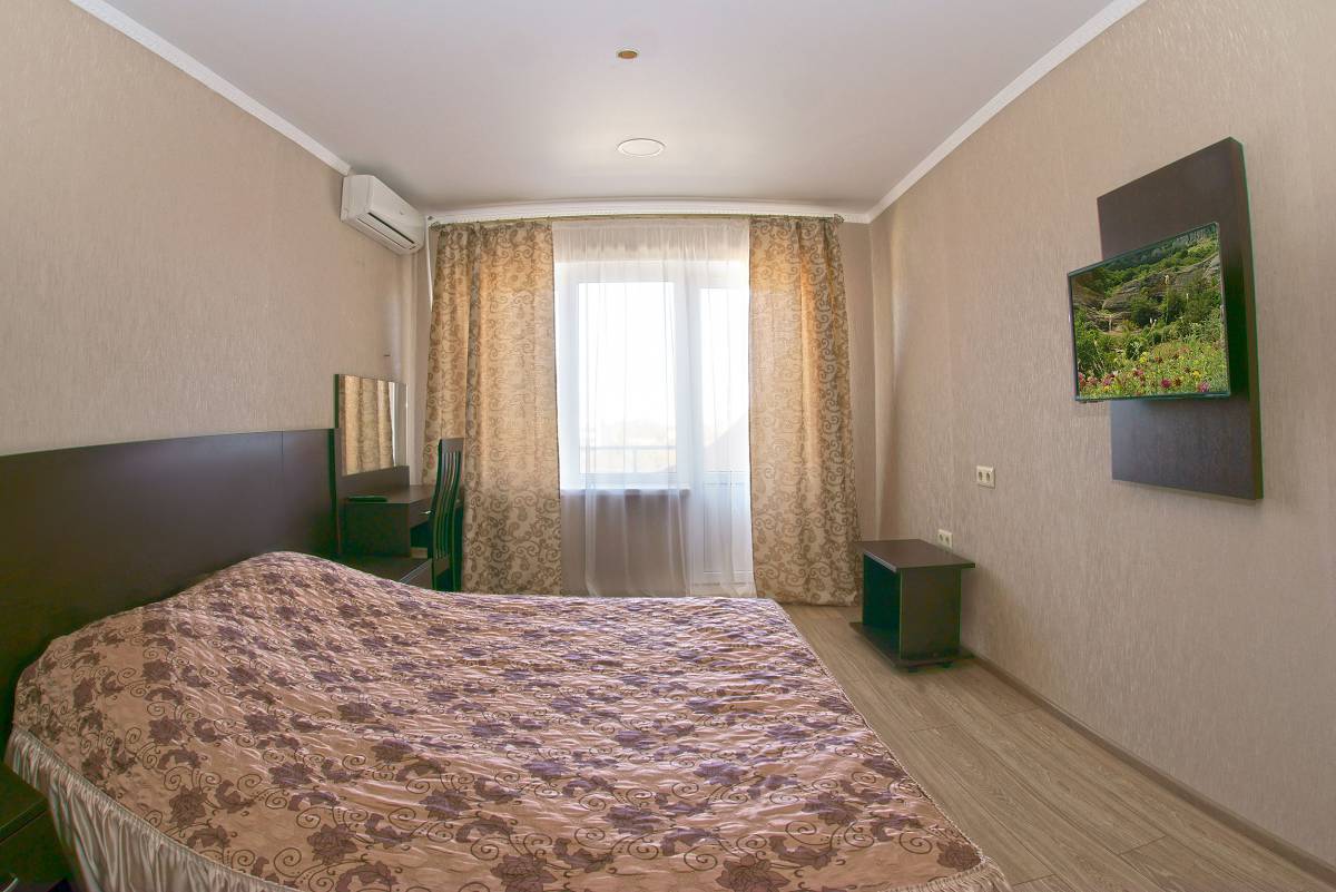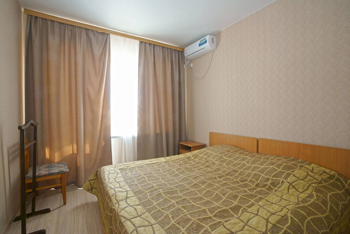 - 2-местный 2-комнатный улучшенный. 6 этаж. Площадь – 24 кв.м.В номере: спальня с двумя односпальными кроватями, гостиная с мягкой мебелью, телевизор, холодильник, кондиционер, гладильная доска, утюг, чайная посуда, санузел, лоджия с видом на море или город.