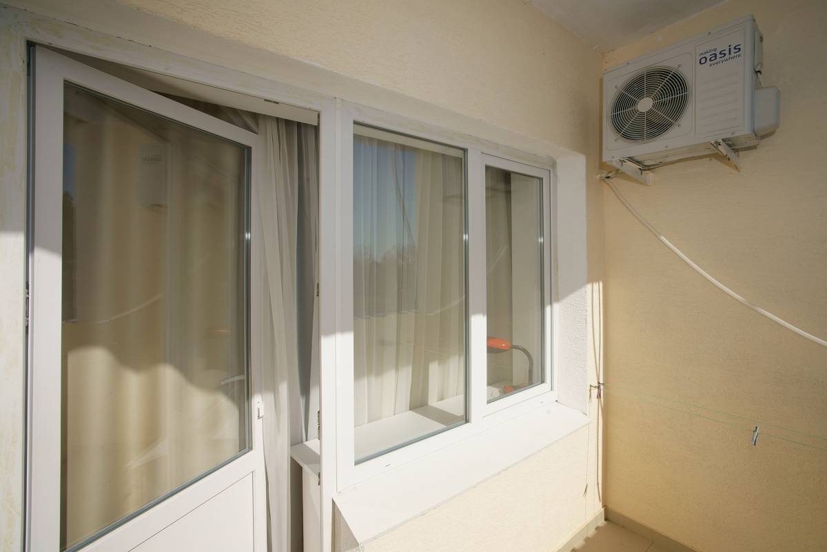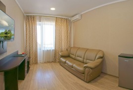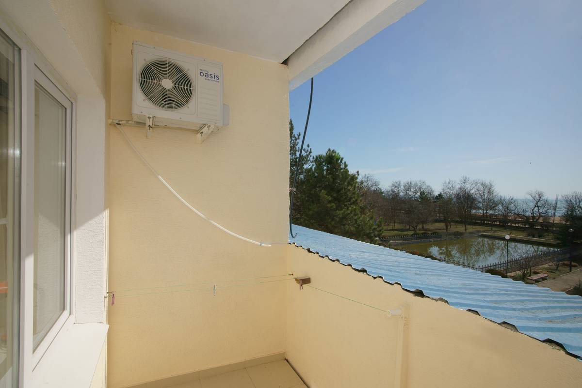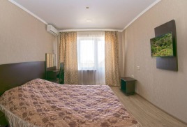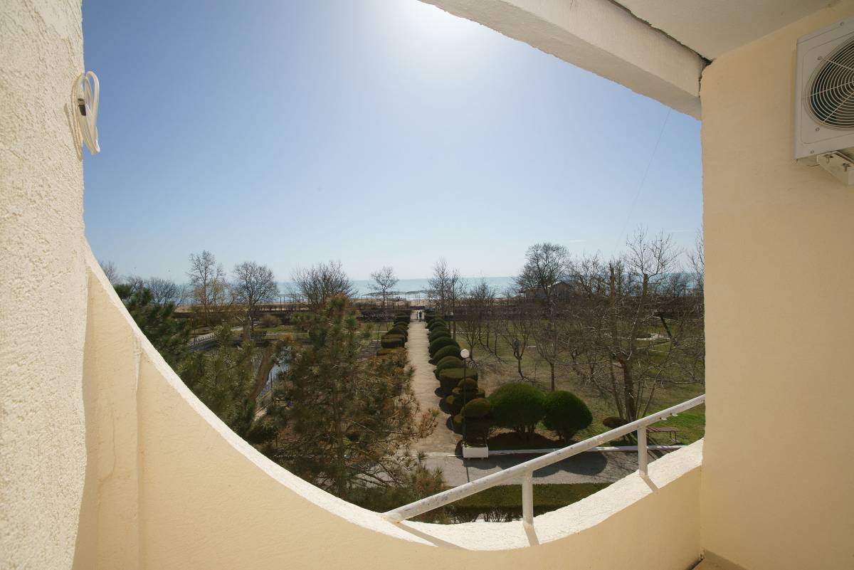 - 2-местный 2-комнатный улучшенный. Площадь – 59 кв.м.В номере: спальня двуспальной кроватью, гостиная с мягкой мебелью, телевизор, холодильник, кондиционер, набор посуды, электрочайник, санузел, балкон-терраса с набором летней пластиковой мебели (вид на море и парковую зону).