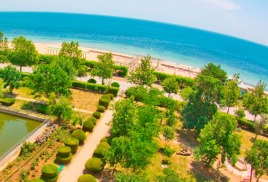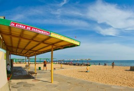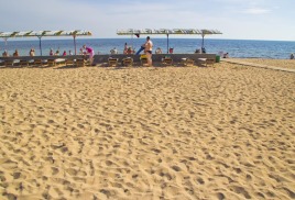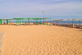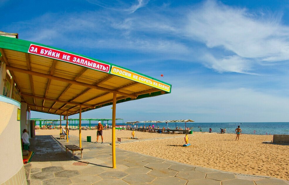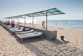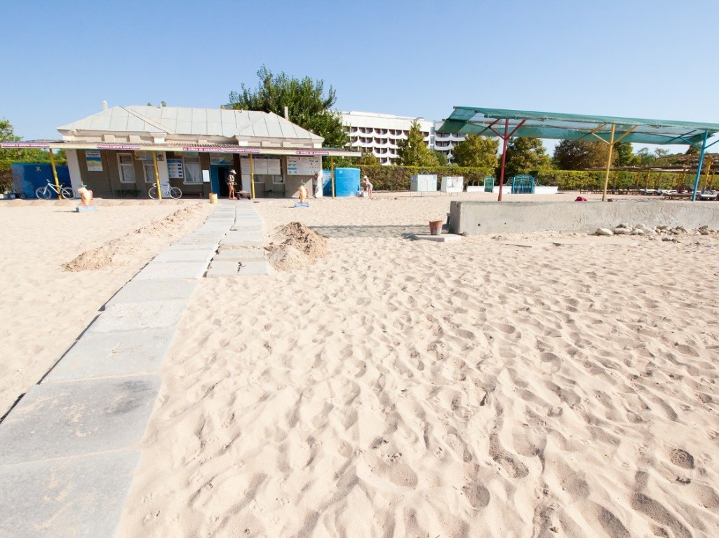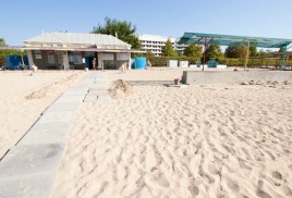 Пляж: собственный песчаный пляж 100-150 м от корпусов, оборудован деревянными лежаками (пользование входит в стоимость), теневыми навесами, питьевыми фонтанчиками, ногомойками.