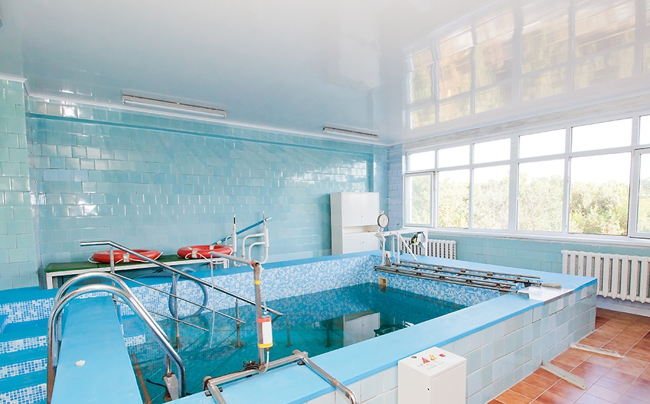- 2 лечебных бассейна, 6х3 метра для детей и взрослых с хлоридной натриевой минеральной водой, работают в круглый год;
