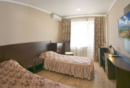 - 2-местный 1-комнатный улучшенный север/юг. 6й этаж. Площадь – 12 кв.м.В номере: две односпальные кровати, телевизор, холодильник, кондиционер, санузел, лоджия с видом на море или город.