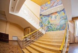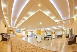 Размещение: Главный корпус - 6-ти этажный с лифтом, 1-2 этажи лечебное отделение; корпус соединен переходом с 2х этажным лечебно-диагностическим корпусом, столовой, клубом, детской игровой комнатой.