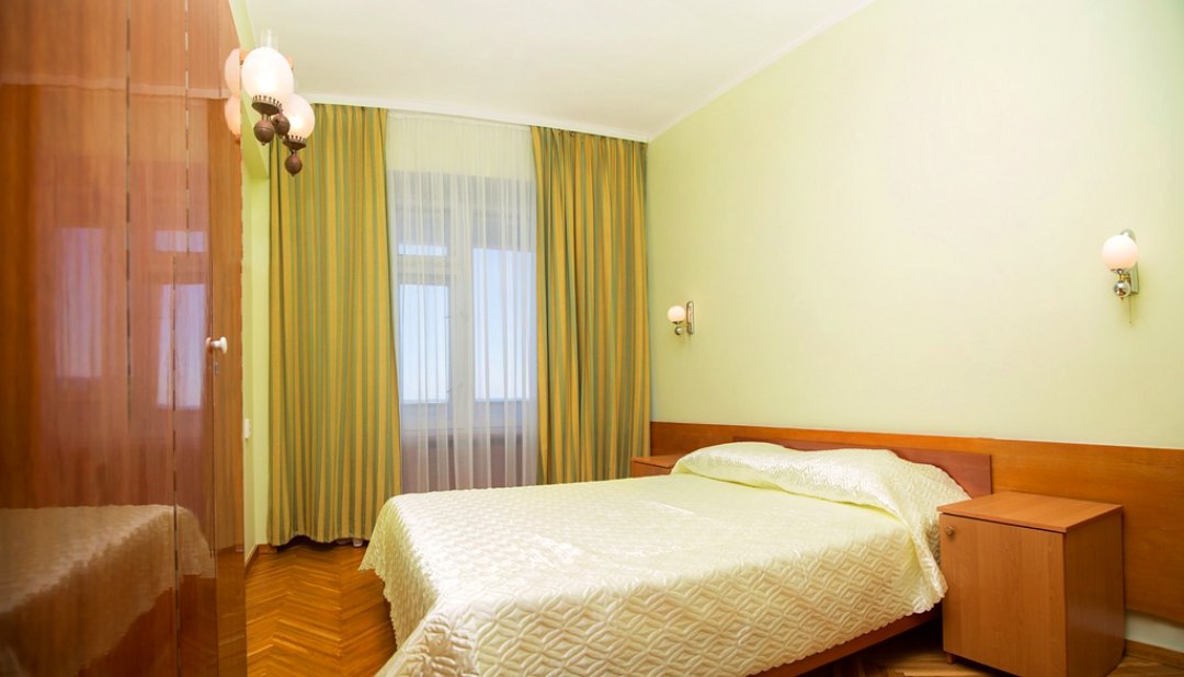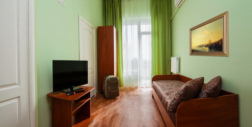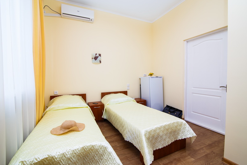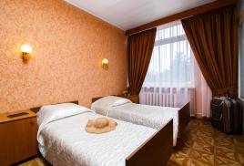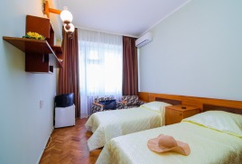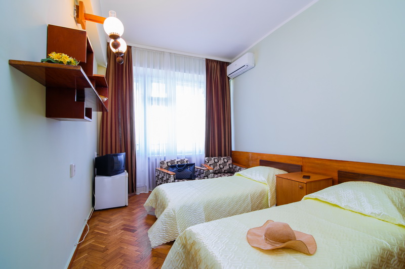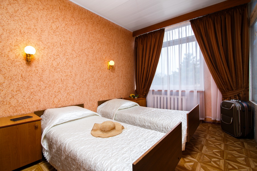 - 2-местный 1-комнатный стандартный номер. Площадь: 15 кв.м. южная сторона – 27 кв.м северная сторона . В номере: две односпальные кровати, кондиционер, телевизор, холодильник, чайный набор, санузел с душевой кабиной, балкон и окна с видом на черное море или парк санатория, в некоторых номерах выходящих на северную сторону, балкон отсутствует.