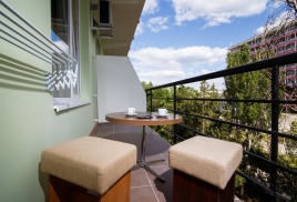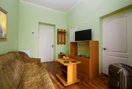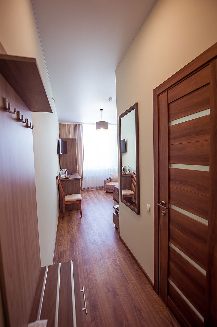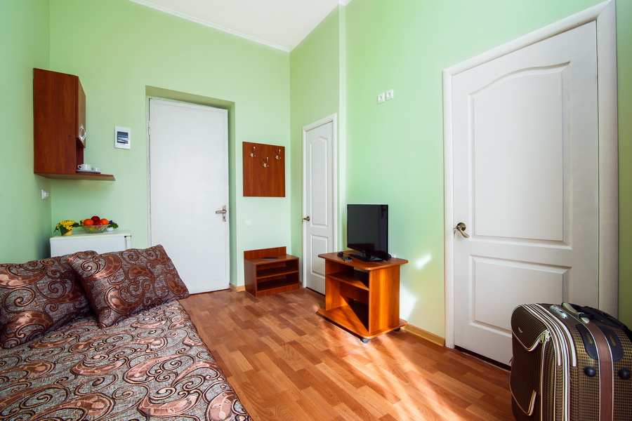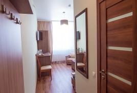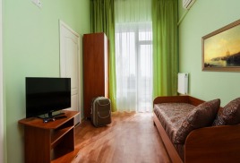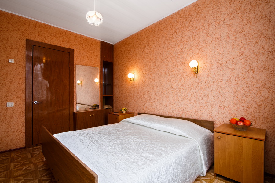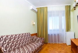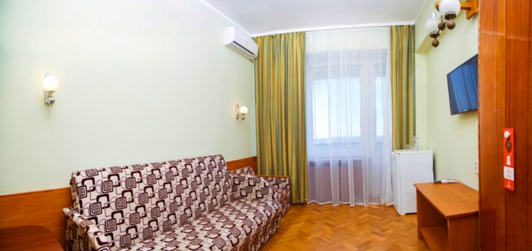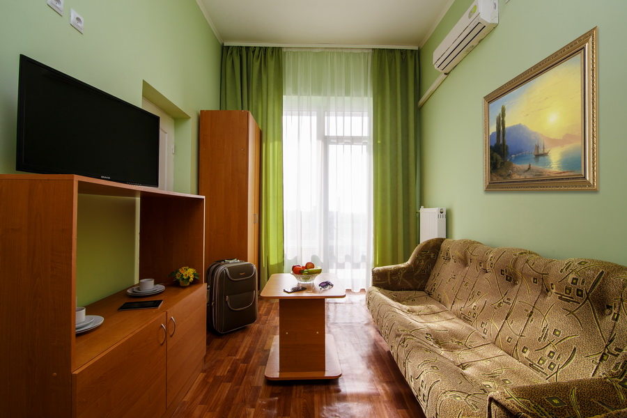 - 2-местный 2-комнатный комфорт улучшенный. Площадь: 24 кв.м. В номере: спальня с двуспальной кроватью, гостиная с мягкой мебелью, кондиционер, телевизор, холодильник, чайный набор, сейф, санузел с душевой кабиной, балкон (вид на парк).