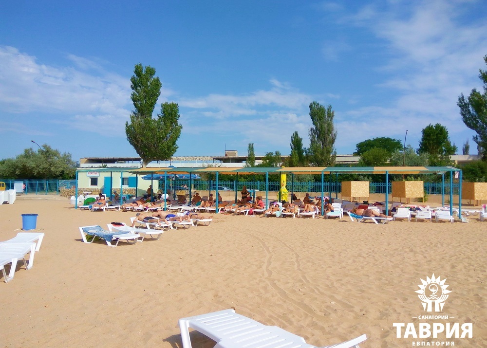 Санаторий «Таврия» - многофункциональный санаторно-курортный комплекс, прошедший реконструкцию и обновление в 2016 году и в 2024 году. Находится в курортной зоне города Евпатория в пешей доступности от развлекательной инфраструктуры: аквапарк, дельфинарий, аквариум, Набережная им.Горького и парк им.Фрунзе, где расположены кафе, дискотеки, бары. Парковая зона санатория «Таврия» составляет около 12 га. Рядом с санаторием расположено озеро, в котором обитает большое количество лебедей, предусмотрена возможность кормления птиц.