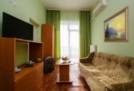 - 2-местный 2-комнатный комфорт улучшенный. Площадь: 25 кв.м. В номере: спальня с двуспальной кроватью, гостиная с мягкой мебелью, кондиционер, телевизор, холодильник, чайный набор, сейф, санузел с душевой кабиной, балкон (вид на парк).