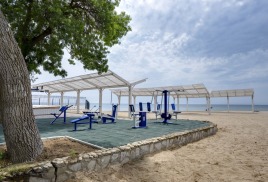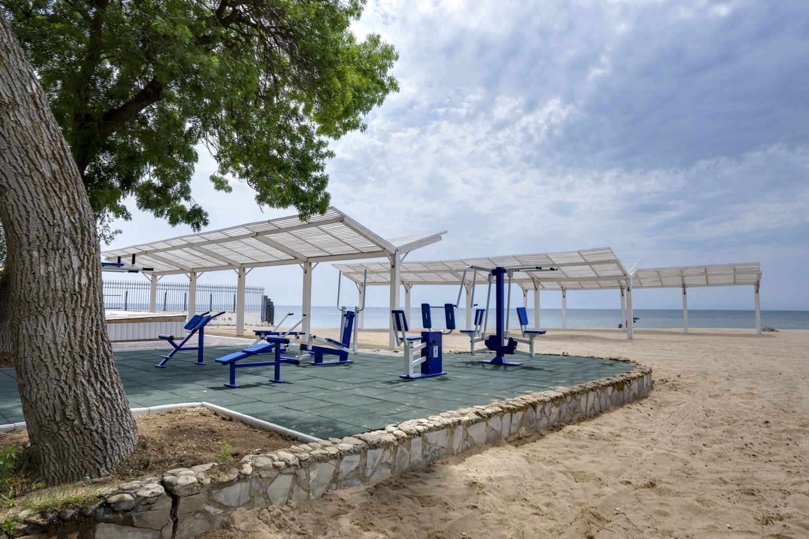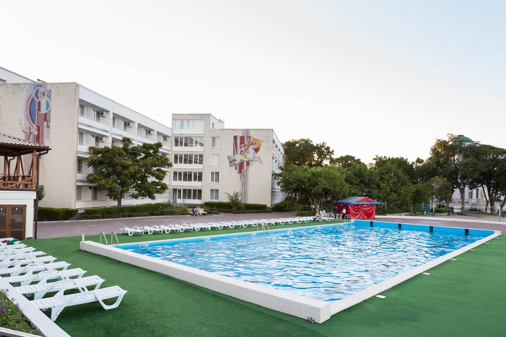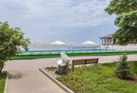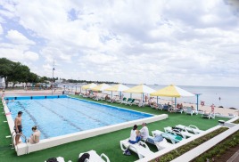 Пляж: собственный песчаный, в 50 м от санатория. На пляже навесы, шезлонги, пляжные полотенца (входят в стоимость путевки), летнее кафе, раздевалки, питьевые фонтанчики, душ, туалет, работает спасательный пост.