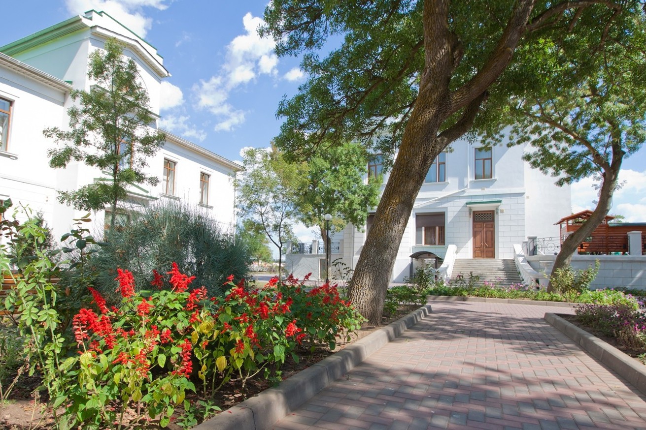Размещение: корпуса № 1, 2, 3 (4-этажные), объединенных между собой. Отдельно стоящие корпуса: № 4 (2-этажный), № 5 (3-этажных), корпус Графский (2-этажный), коттедж (1-этажный), два лечебных корпуса, столовая. Все корпуса без лифта.