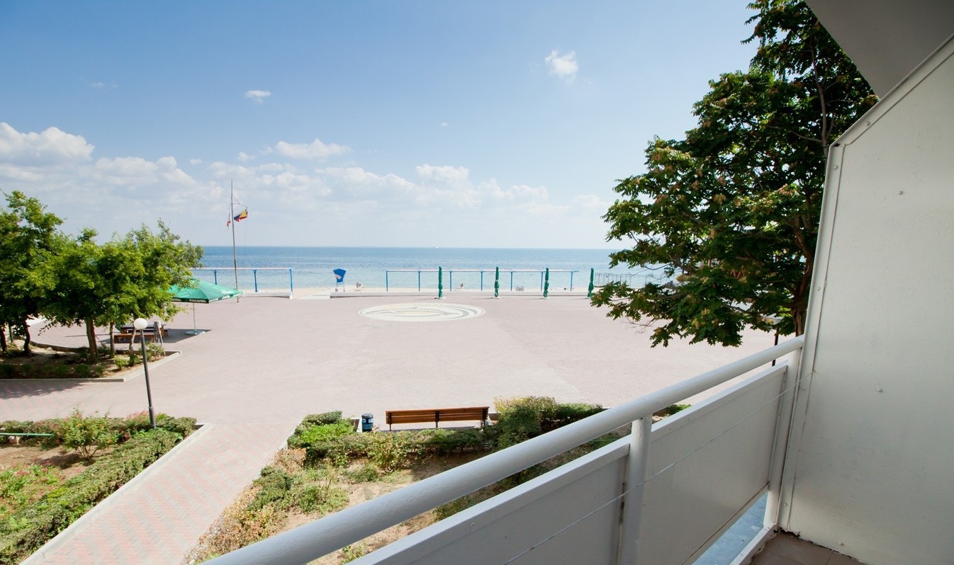 - 2-местный 1-комнатный номер стандарт с балконом (корпуса № 3). Площадь номера 16 кв. м. В номере: 2 односпальные кровати или одна двуспальная кровать, дополнительно кресло-кровать, сейф, кондиционер, холодильник, телевизор, санузел с душем, фен, минипарфюмерия. Размещение до 3 - х человек. Вид на море.