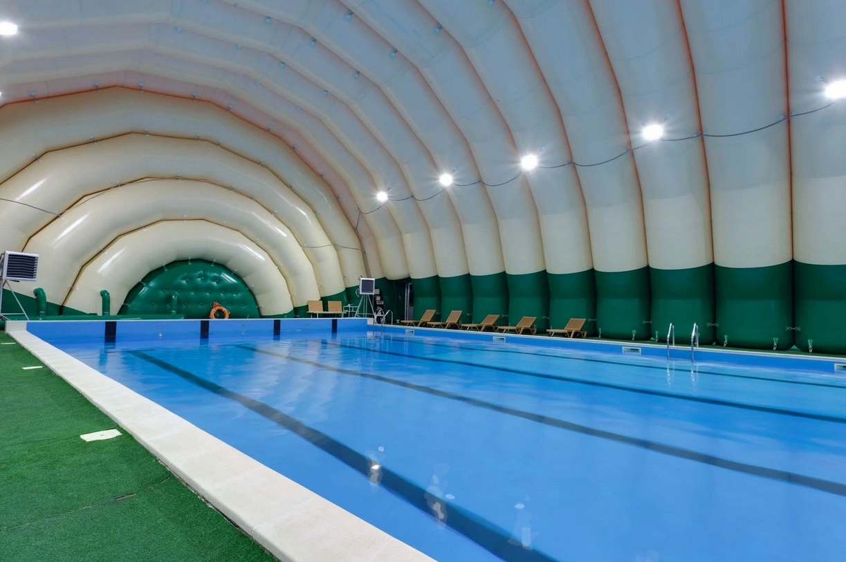 - открытый, подогреваемый бассейн с пресной водой длина 25 м, глубина - 1,5 м, работает круглогодично, на зимний период бассейн накрывают надувным куполом
