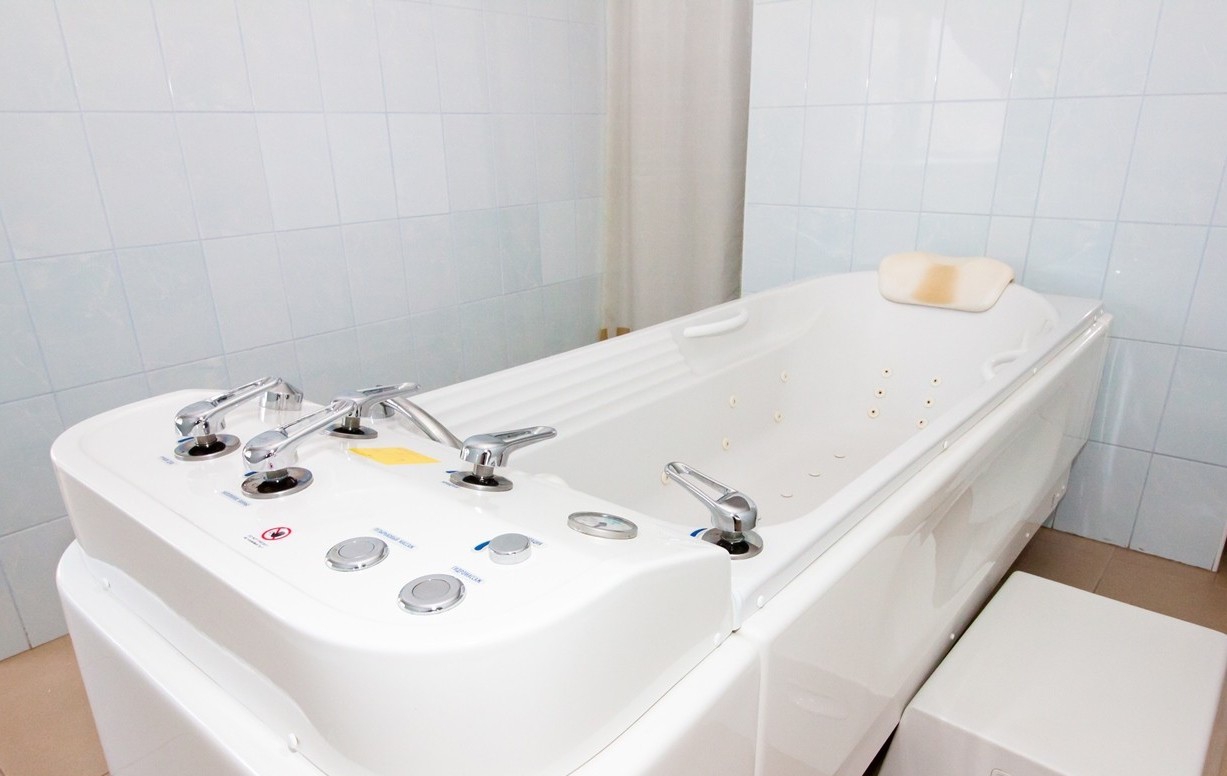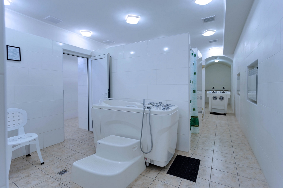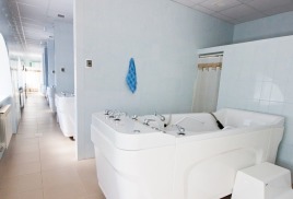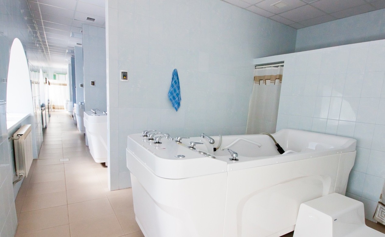- бальнеотерапия (вихревые, солевые, жемчужные, ароматические ванны: хвойные, шалфейные, валерьяновые, розмариновые, лавандовые); душ Шарко, восходящий и циркулярный души