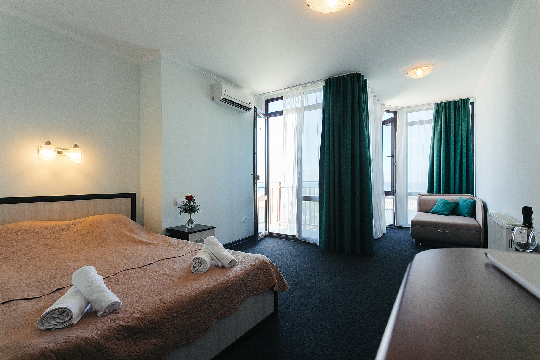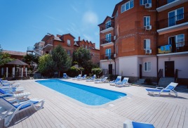 Пляж: в 250 метрах собственный песчаный пляж с пологим заходом, расположен на территории известного "Золотого пляжа" входящего в Топ 5 лучших пляжей. На пляже зонты и шезлонги (входят в стоимость), волейбольная площадка.