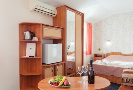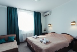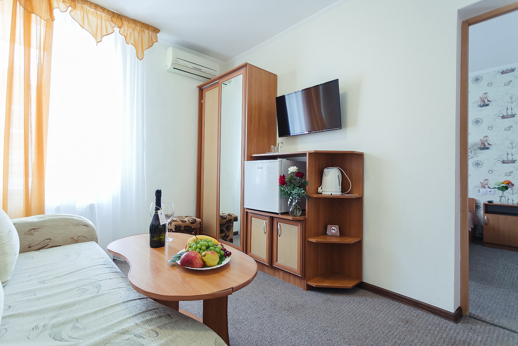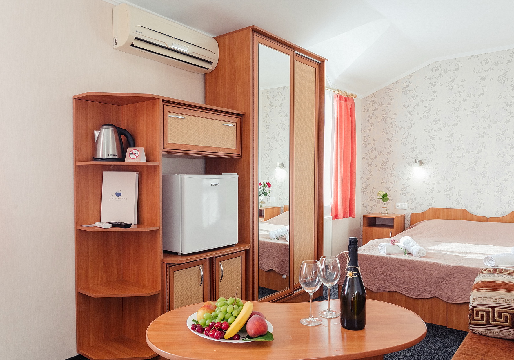 Питание: кафе-веранда питание по системе «Шведский стол» с авторскими блюдами из Крымских продуктов, алкогольные и безалкогольные напитки местного производства. В низкий сезон за дополнительную плату по заказному меню