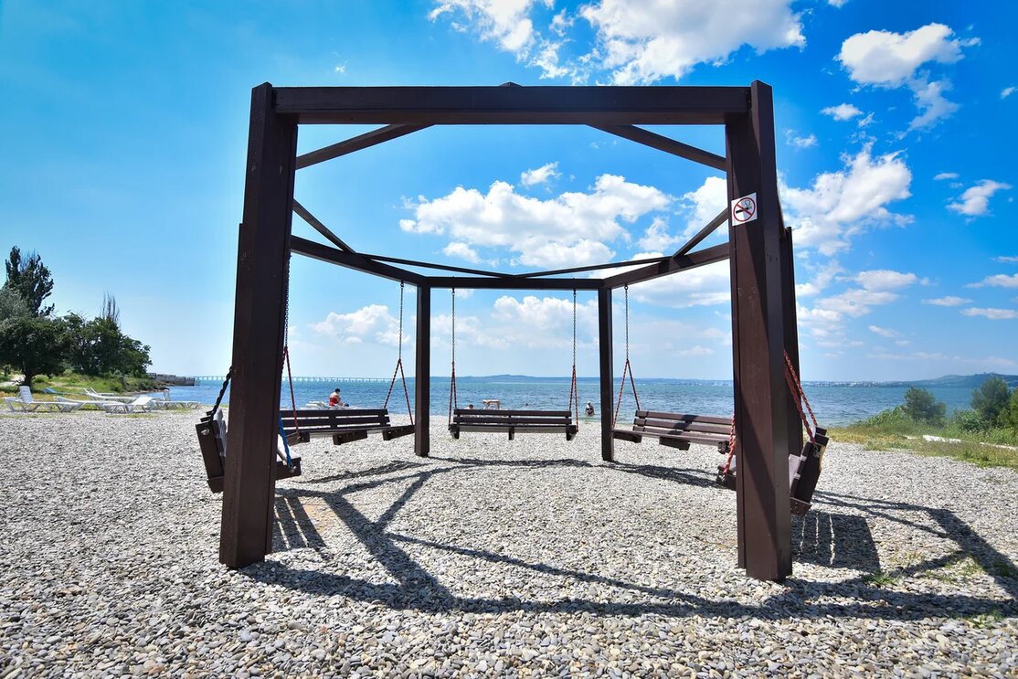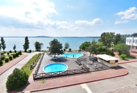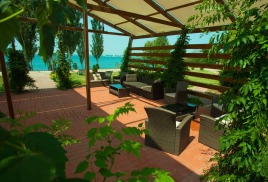 Пляж: собственный песчано-галечный, оборудован шезлонгами, тентами, зонтиками, раздевалками, душевыми кабинами, в 50м от санатория. Спуск в море по лестнице. Для детей на пляже есть надувной бассейн с морской водой.