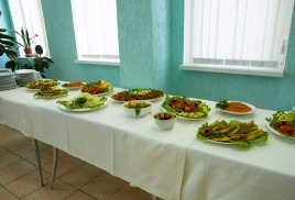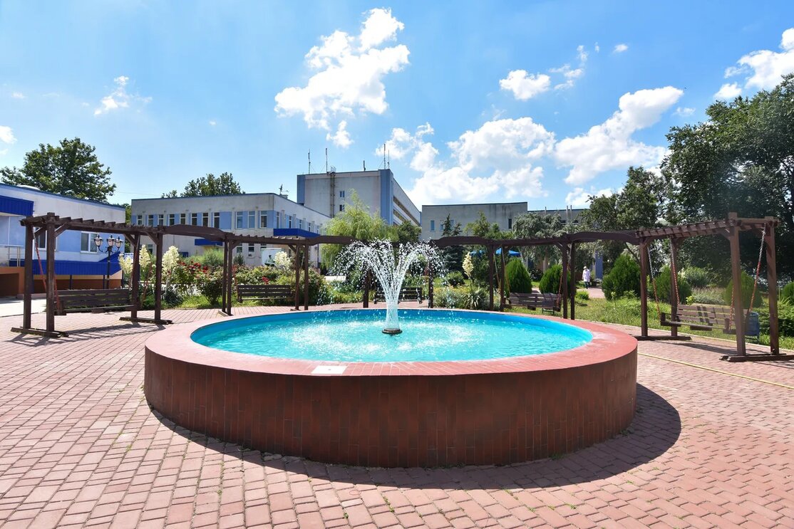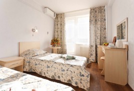 Размещение: 6-ти этажный корпус, в корпусе 2 лифта, отдельно стоящее здание лечебного корпуса в 50 метрах и спортивный корпус (тренажёрный зал и бассейн).