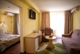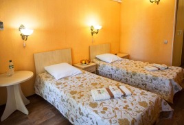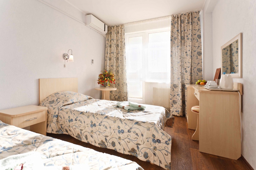 - 2-местный стандарт улучшенный вид на парк: комфортабельный номер с двумя отдельными кроватями, санузел с душевой кабиной, жидкокристаллическим телевизором, кондиционером, мини-баром, спутниковым телевидением, бесплатным Интернетом Wi-Fi, балконом, феном, набором для приготовления чая и кофе, холодильник