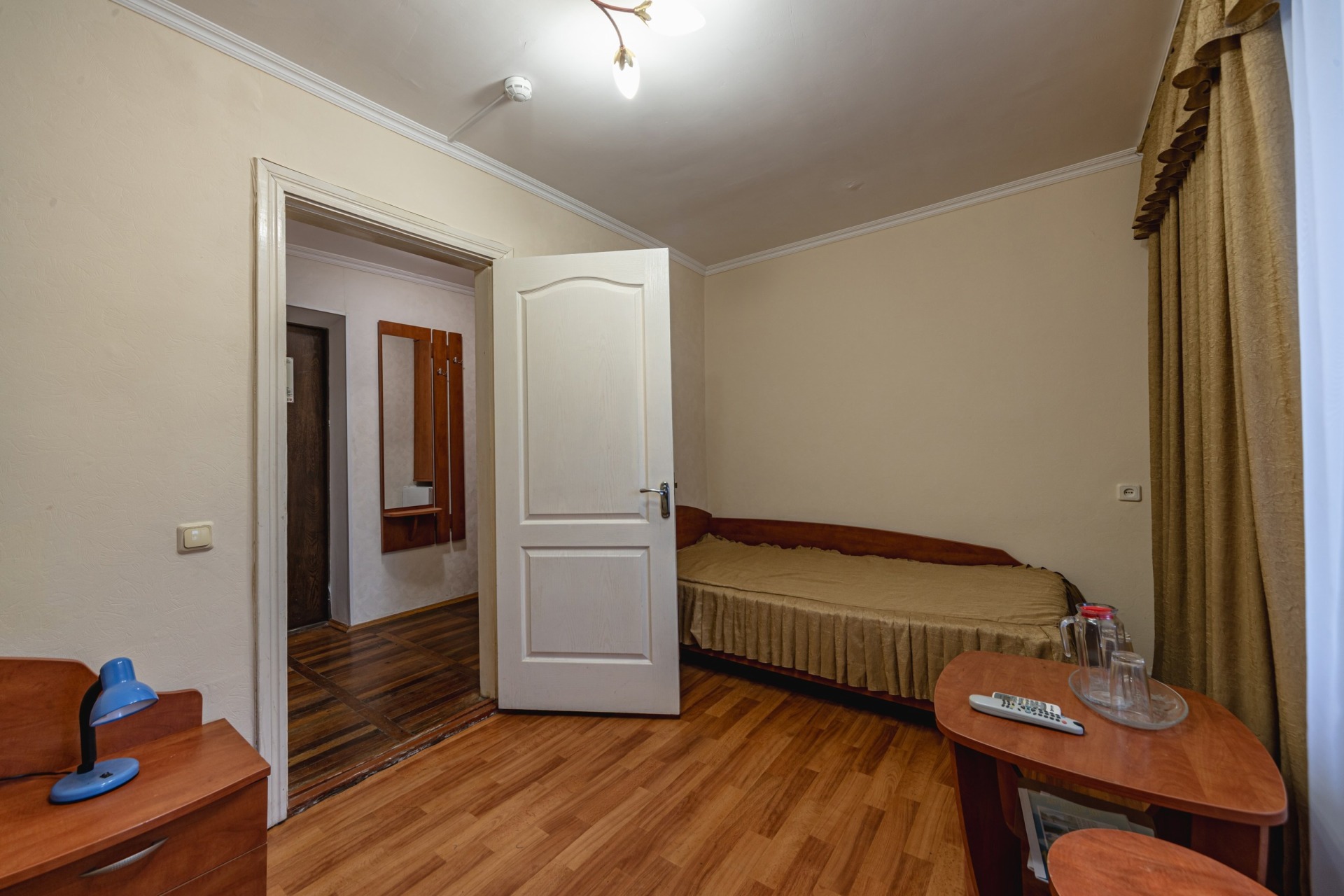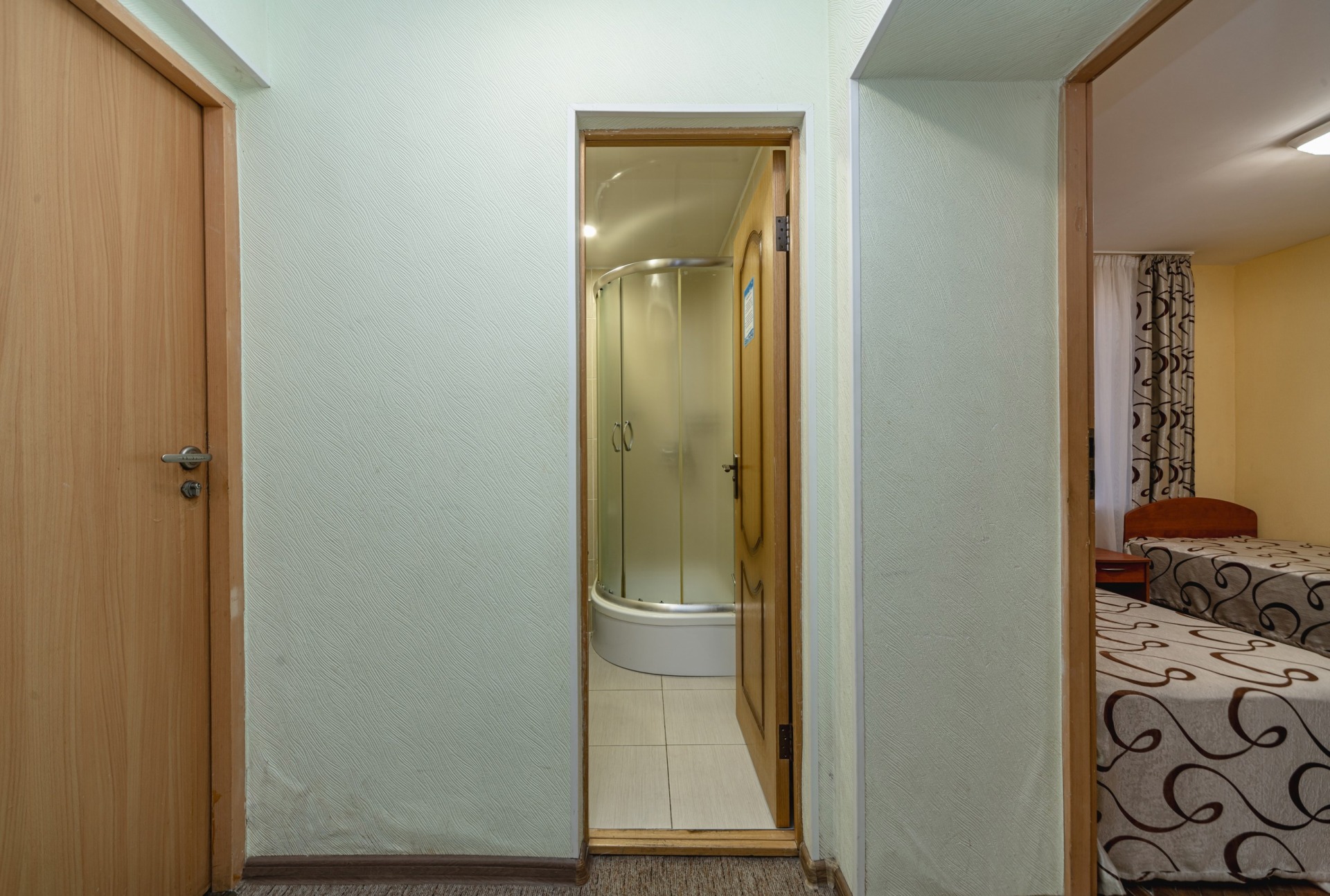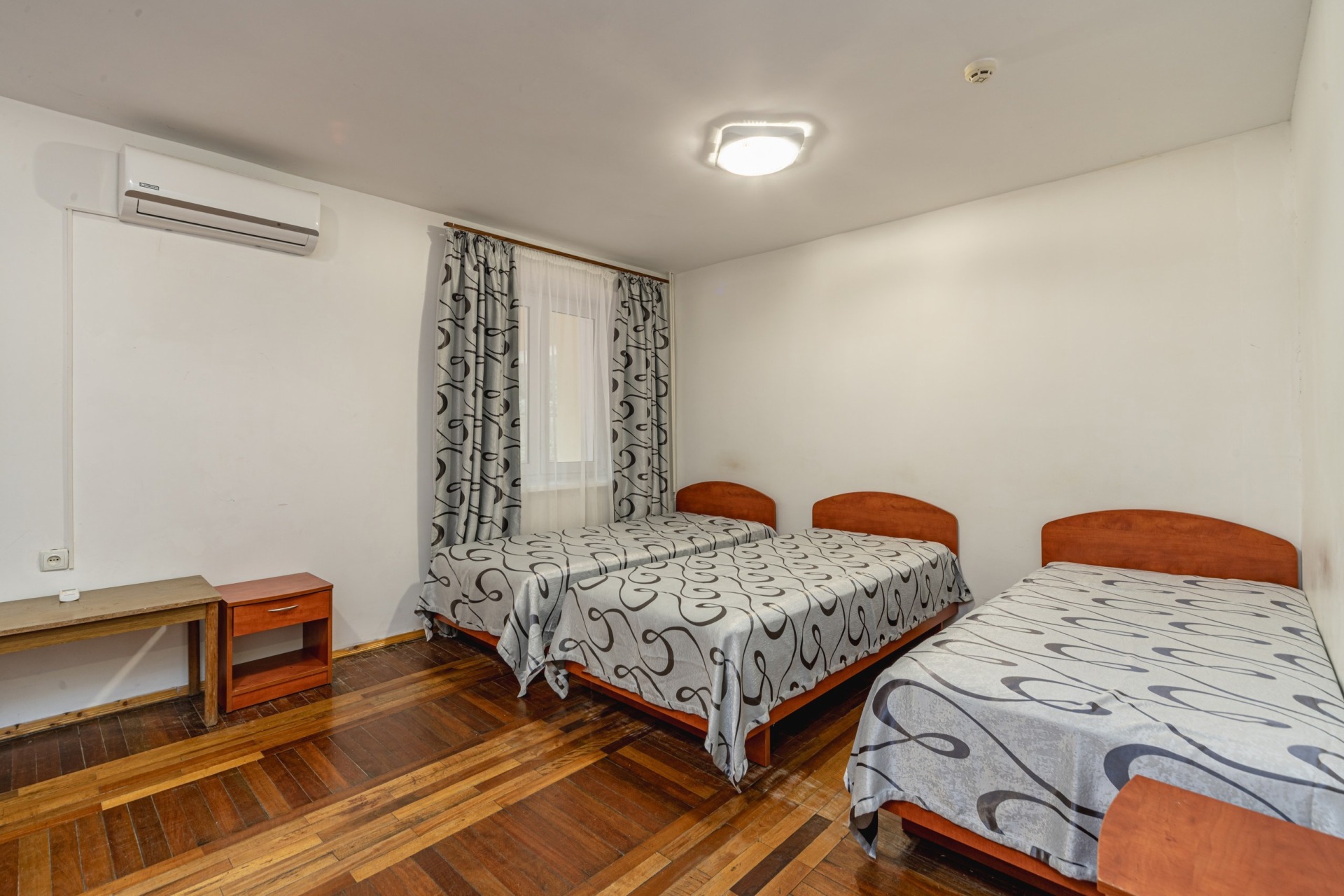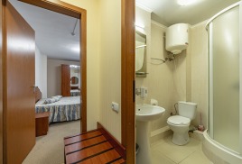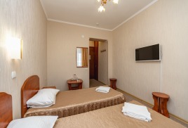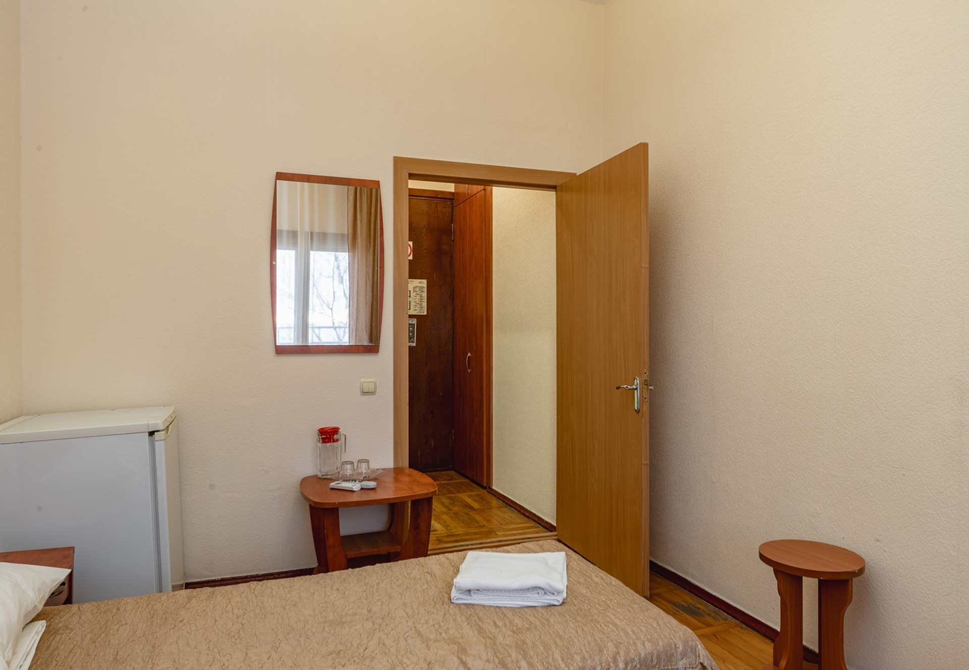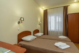 - 2-, 3-местный 1-комнатный Эконом без балкона. В номере: 2 или 3 односпальные кровати, телевизор и холодильник. Санузел (душ, туалет,умывальник) на блок из 2-х номеров 2+3.