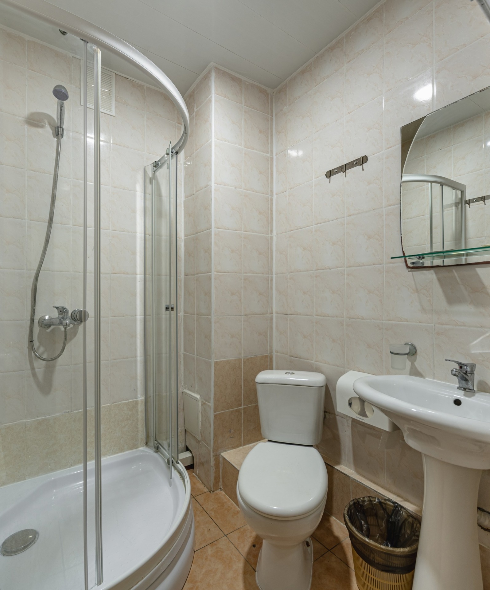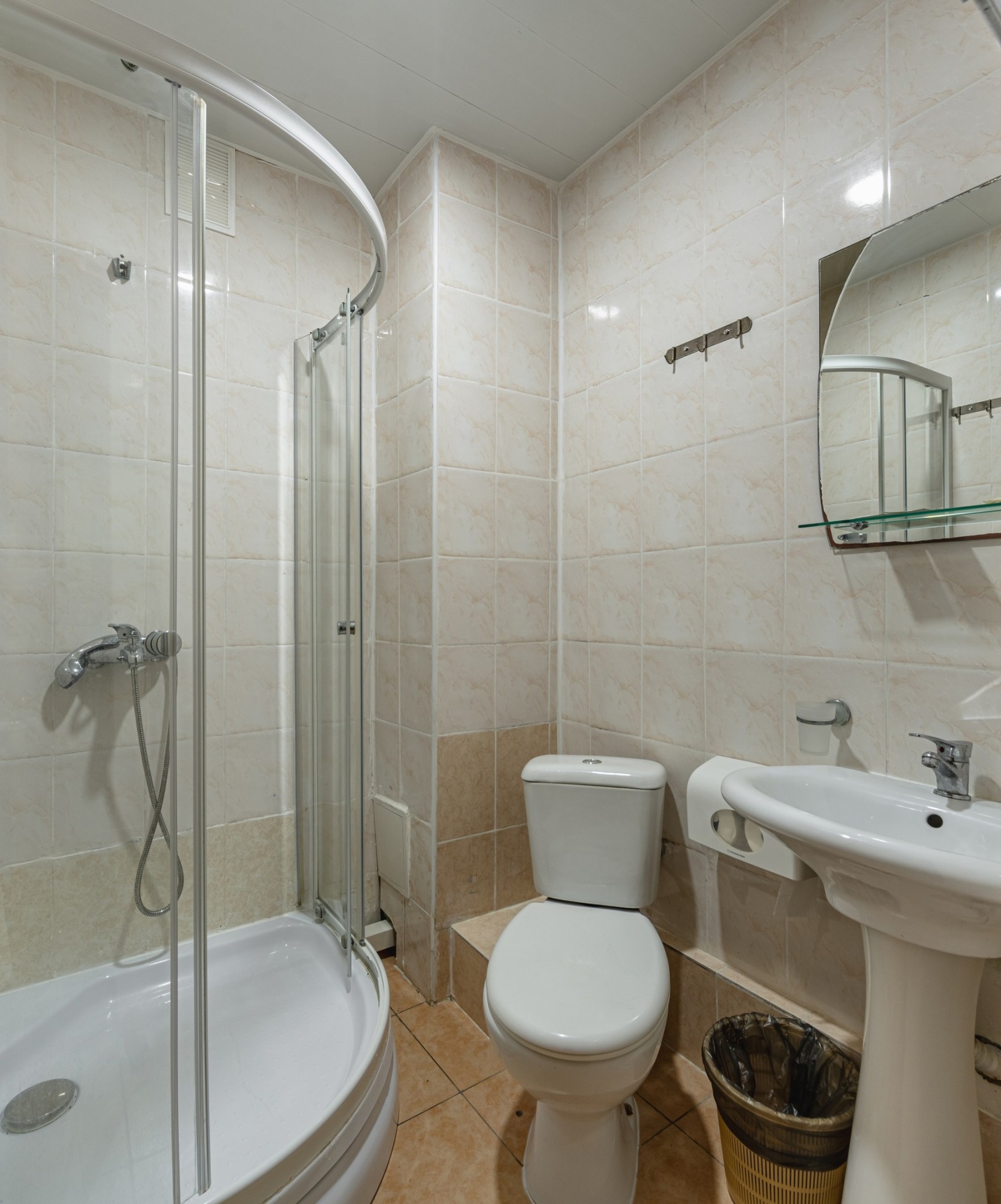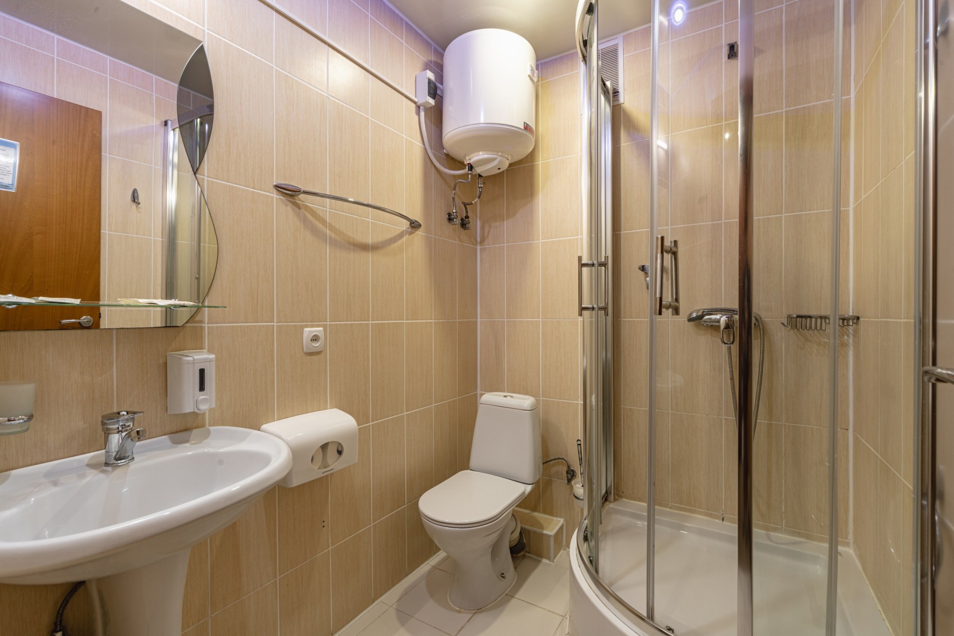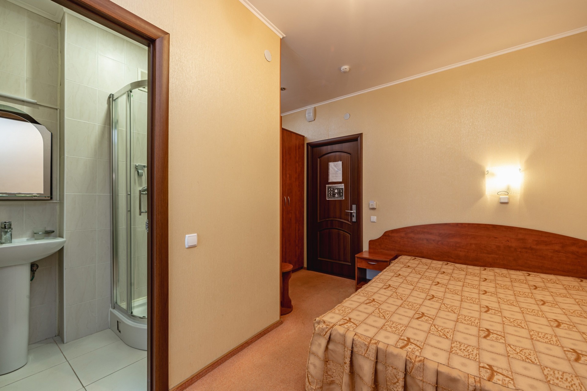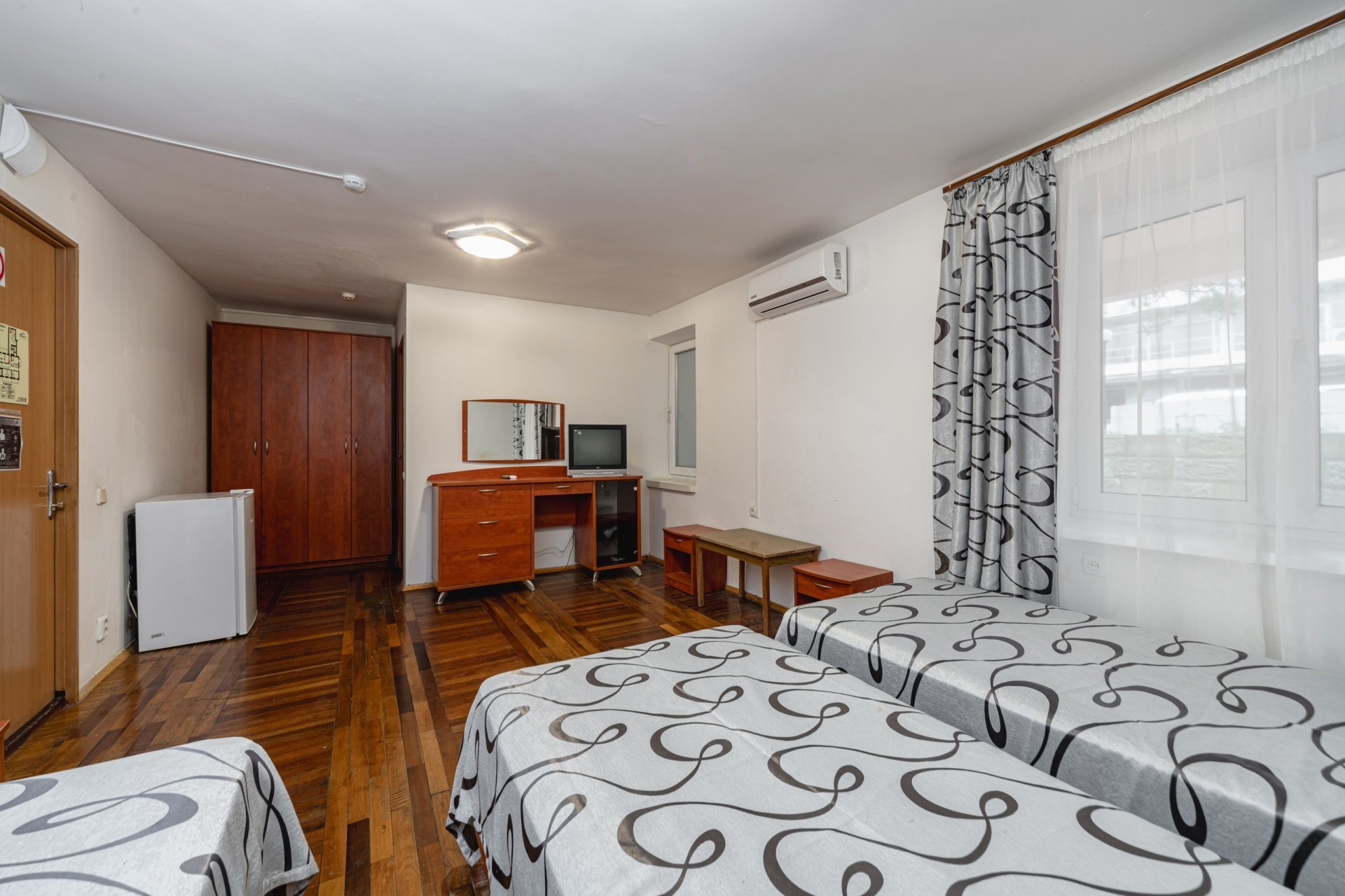 - 2-, 3-местный 1-комнатный Эконом без балкона. В номере: 2 или 3 односпальные кровати, телевизор и холодильник. Санузел (душ, туалет,умывальник) на блок из 2-х номеров 2+3.
