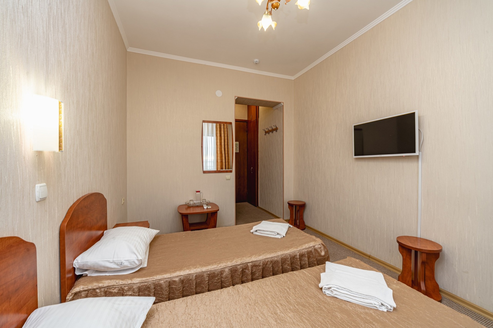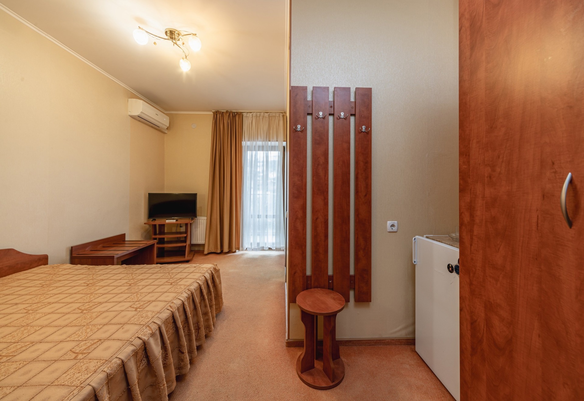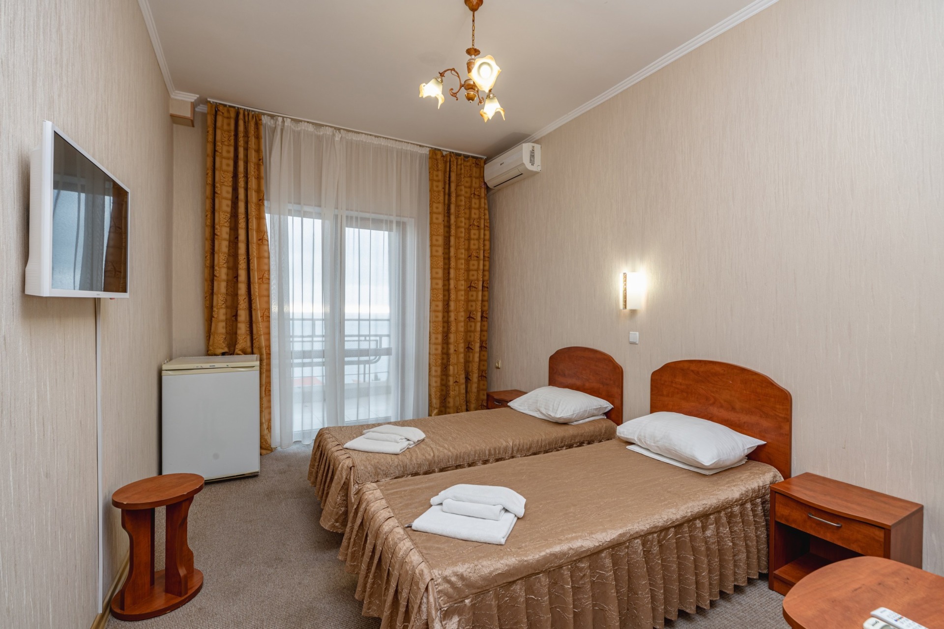 - 2-местный 1-комнатный Эконом Север/Юг. В номере: две односпальные или одна двуспальная кровать, санузел с душем, телевизор и холодильник, балкон.