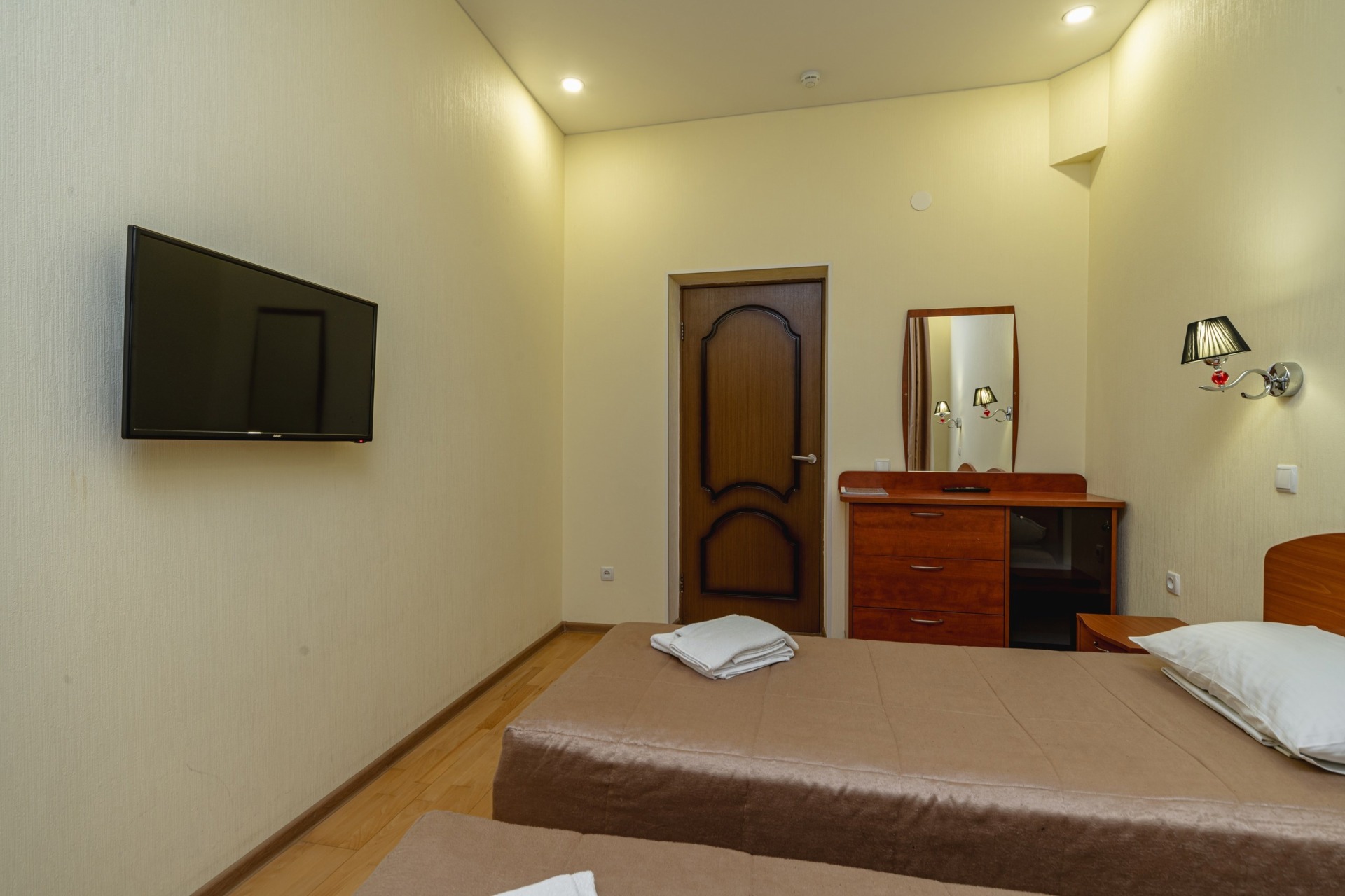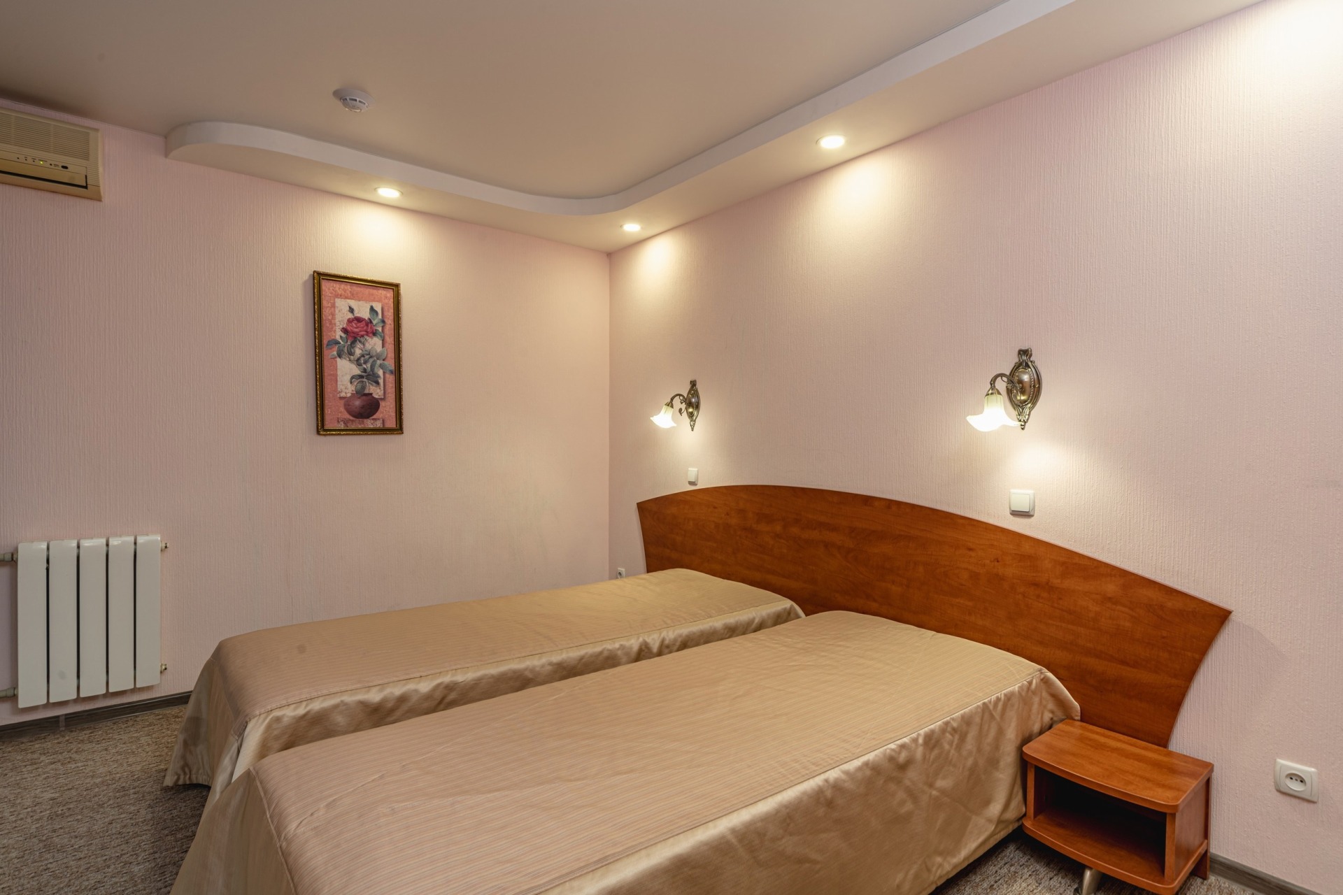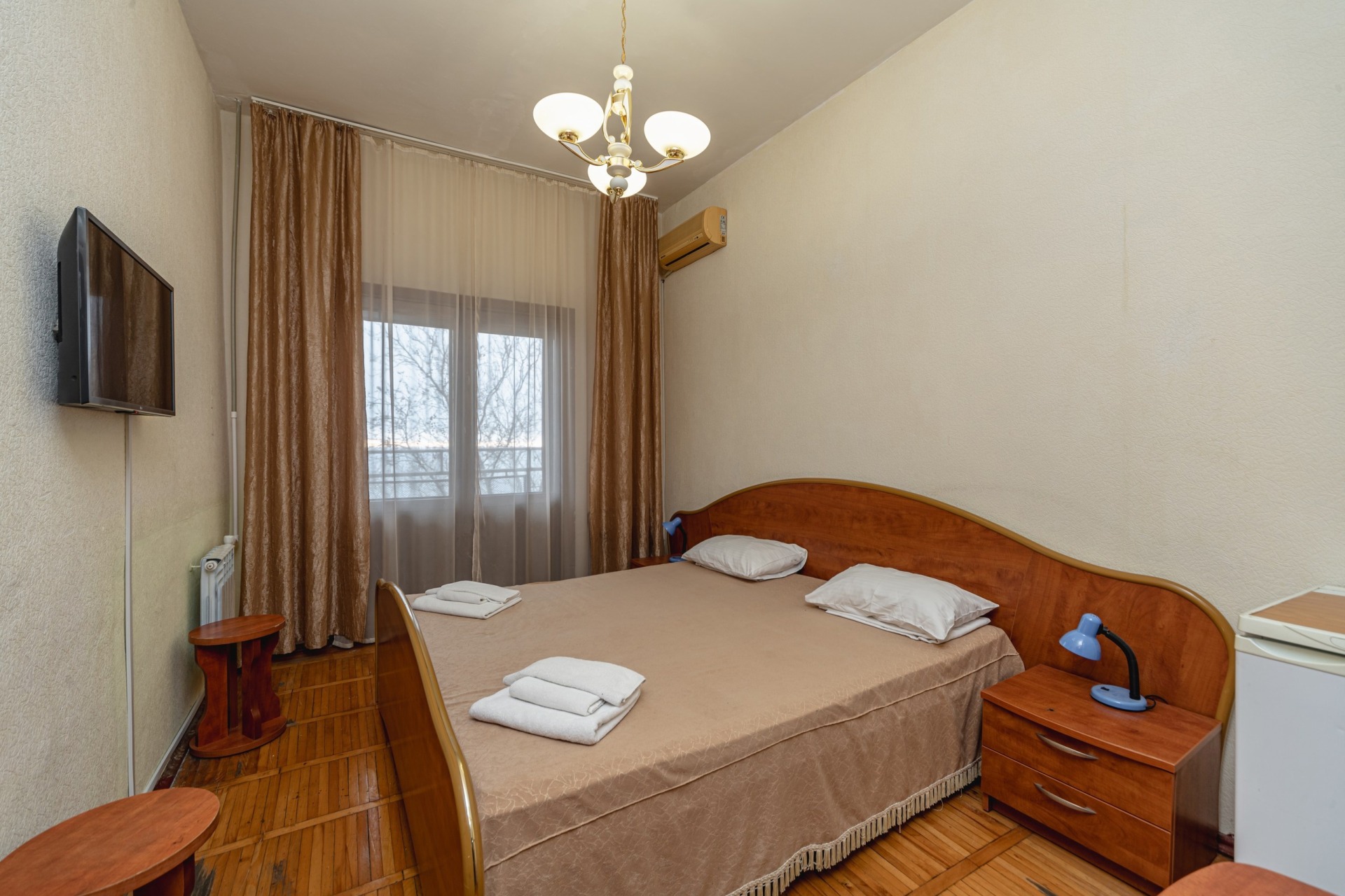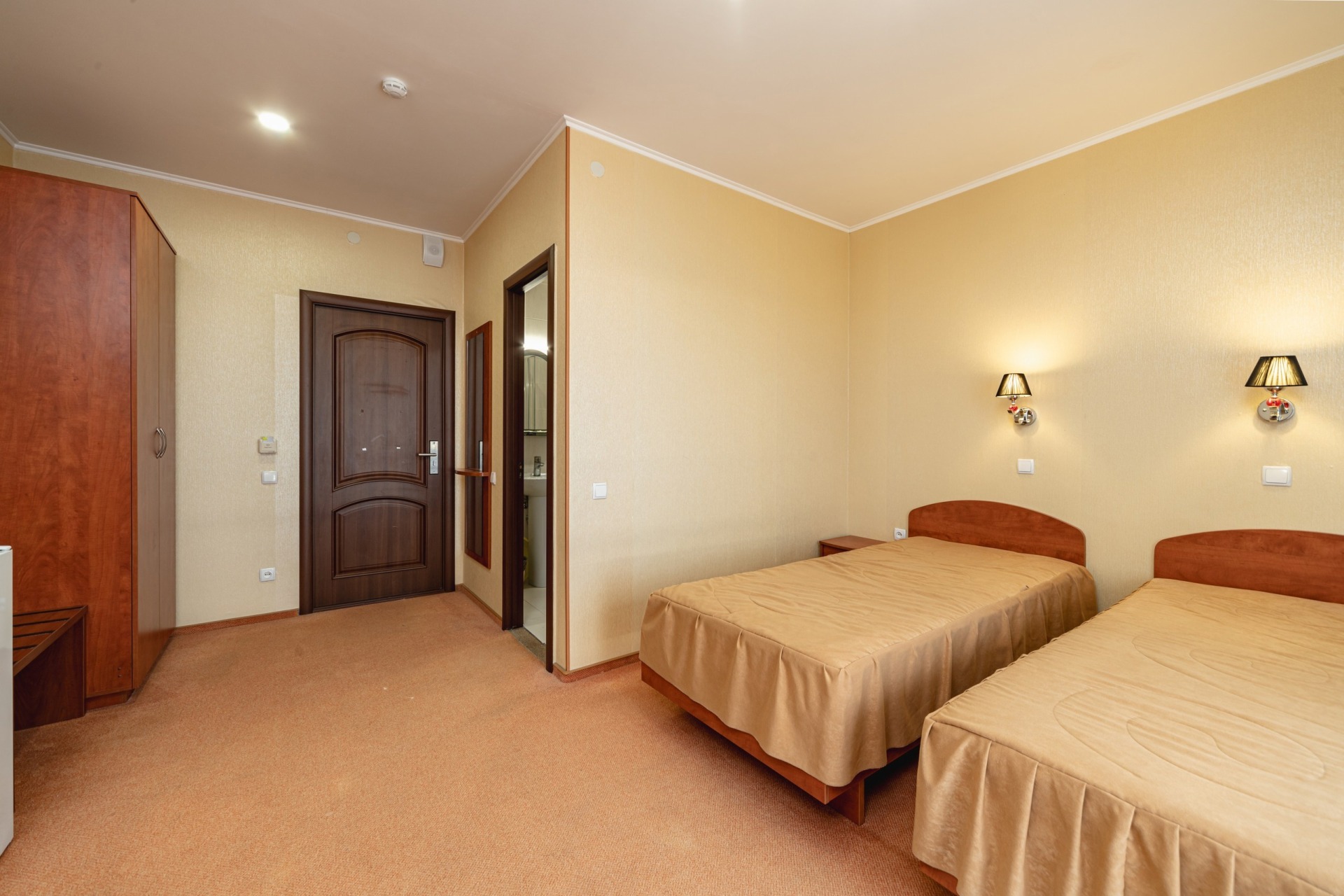- 2-местный 1-комнатный Эконом Север/Юг. В номере: две односпальные или одна двуспальная кровать, санузел с душем, телевизор и холодильник, балкон.