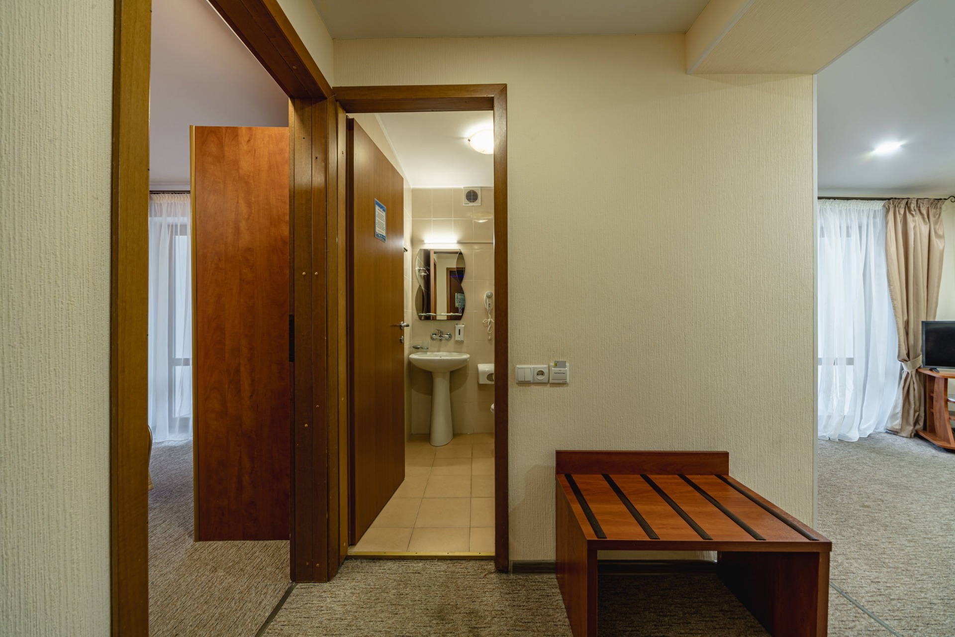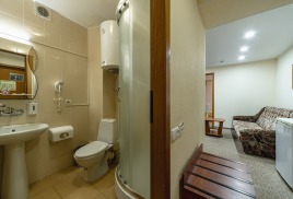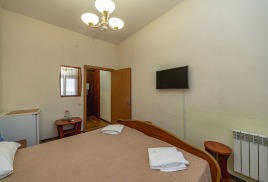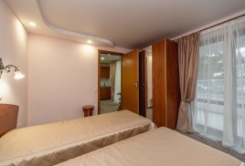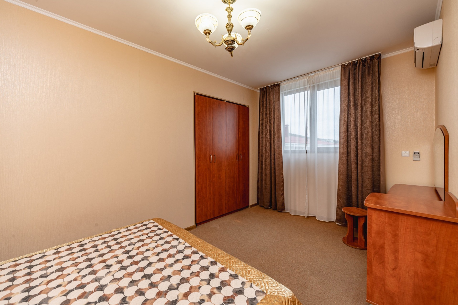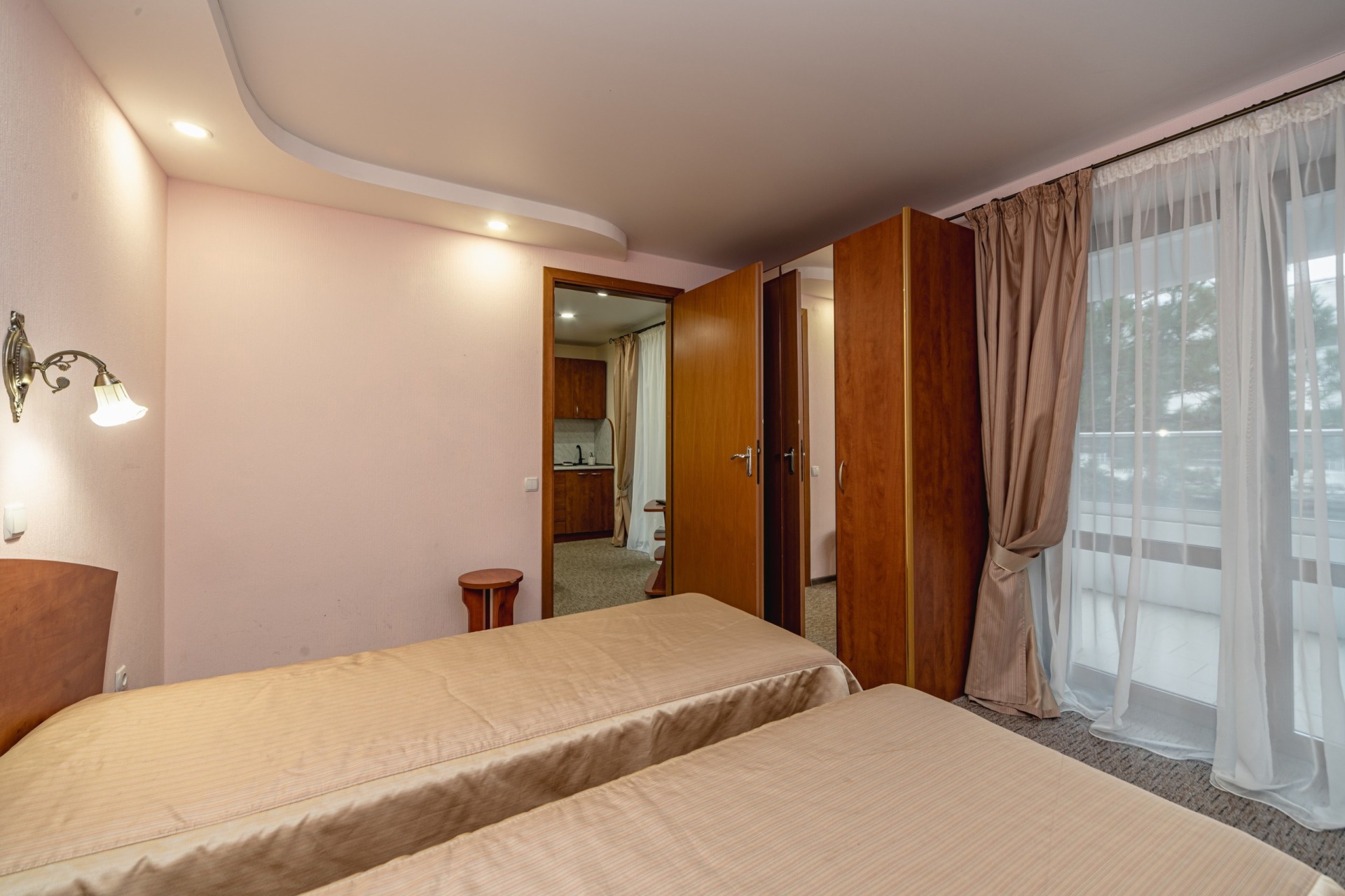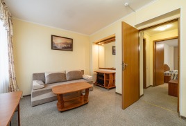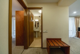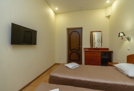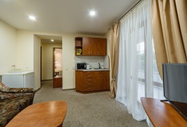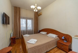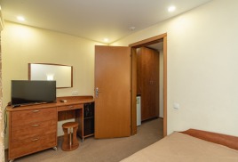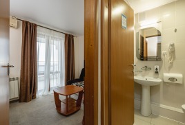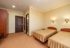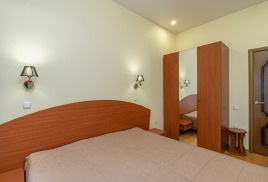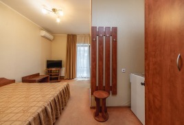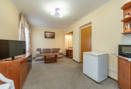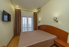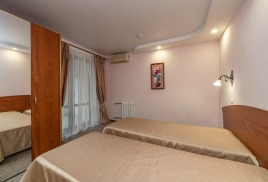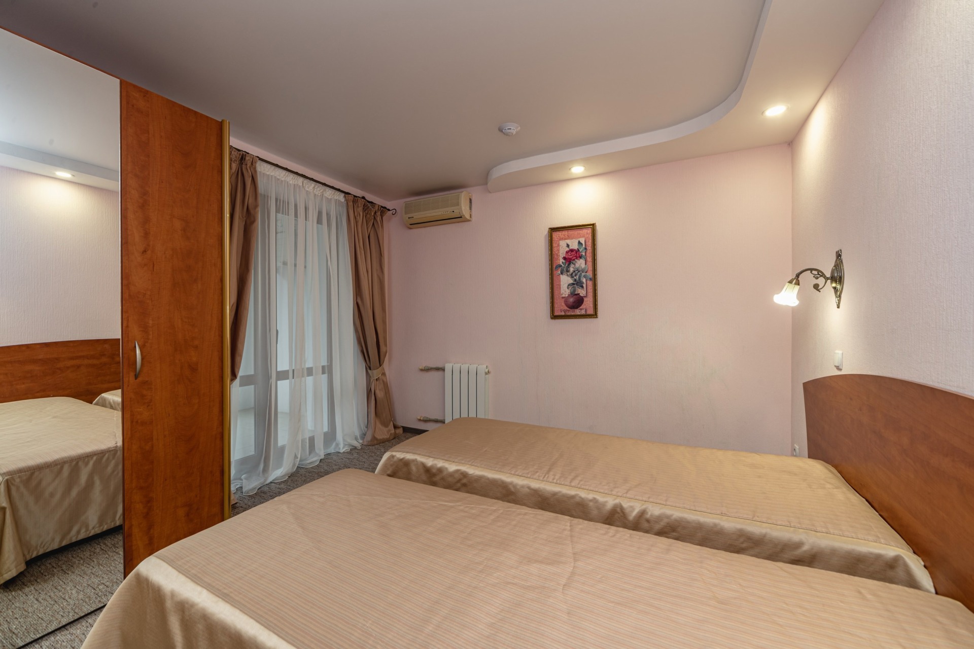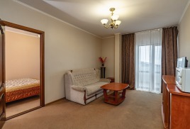 - 2-местный 3-комнатный Полулюкс. В номере: две спальни с двуспальными кроватями, гостиная с мягкой мебелью, санузел с душем, телевизор, холодильник, бойлер, кондиционер, мини-кухня, набор посуды, микроволновая печь, электрочайник, балкон (вид на север).