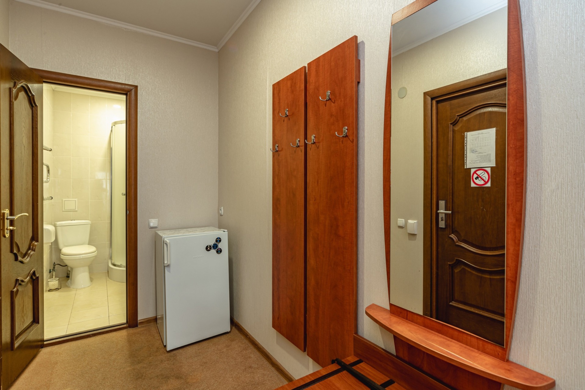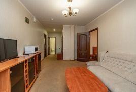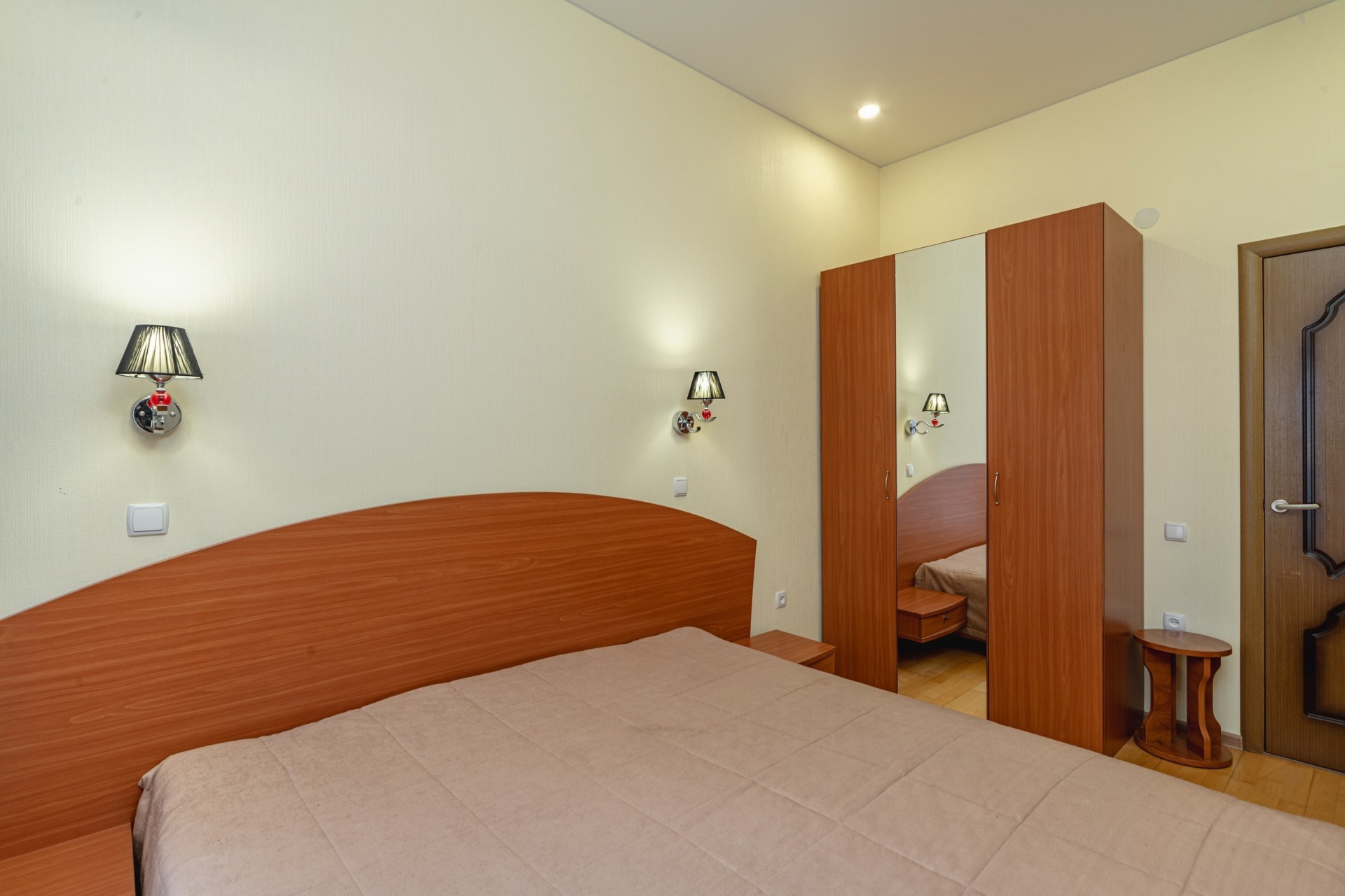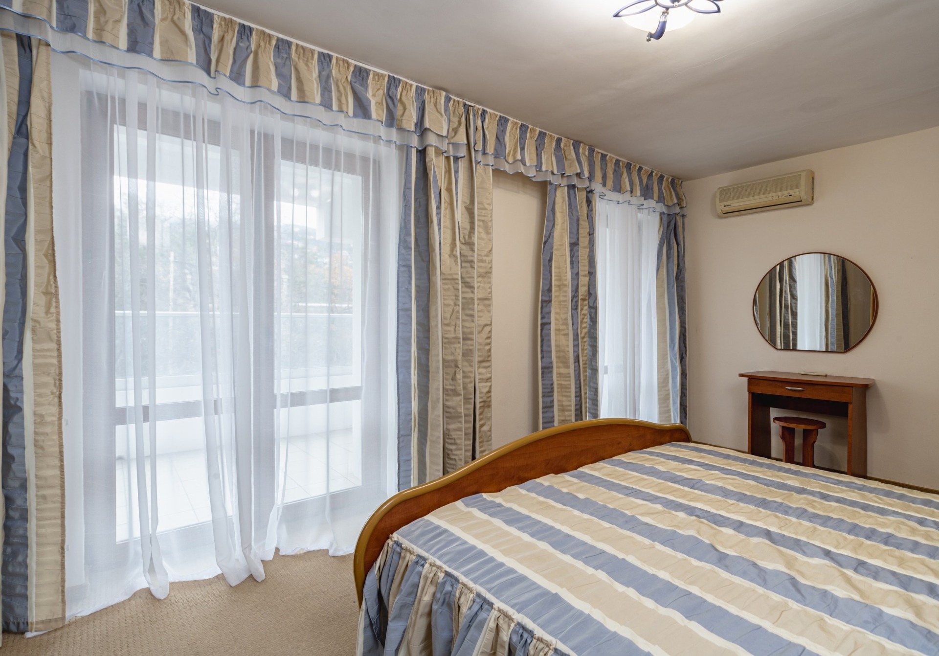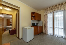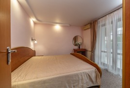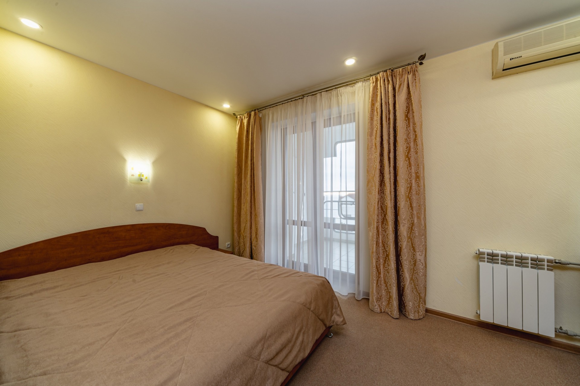 - 2-местный 3-комнатный Полулюкс. В номере: две спальни с двуспальными кроватями, гостиная с мягкой мебелью, санузел с душем, телевизор, холодильник, бойлер, кондиционер, мини-кухня, набор посуды, микроволновая печь, электрочайник, балкон (вид на север).