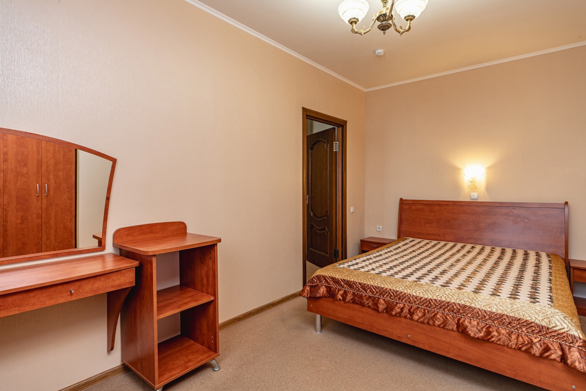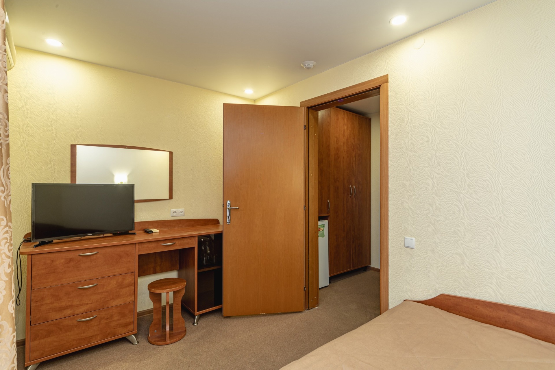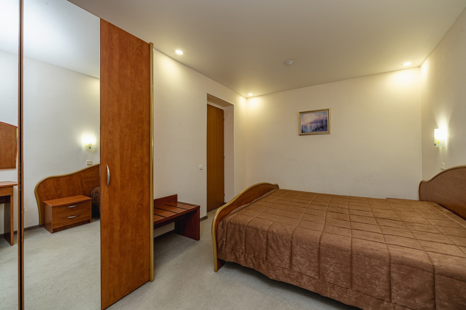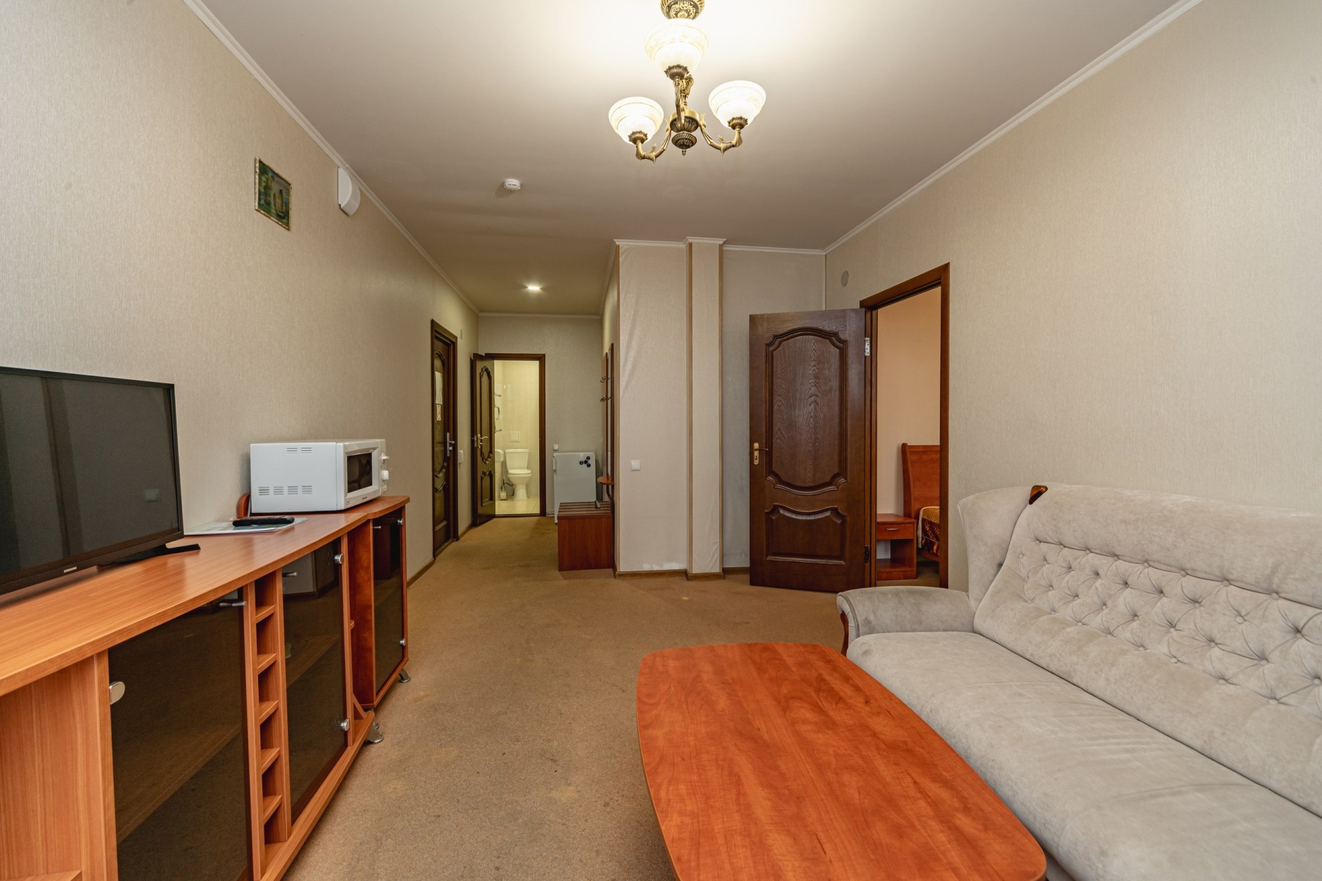 - 2-местный 2-комнатный Повышенной комфортности Север / Юг. В номере: гостиная с мягкой мебелью, спальня с двуспальной кроватью, санузел с душем, телевизор, холодильник, бойлер, кондиционер, балкон.