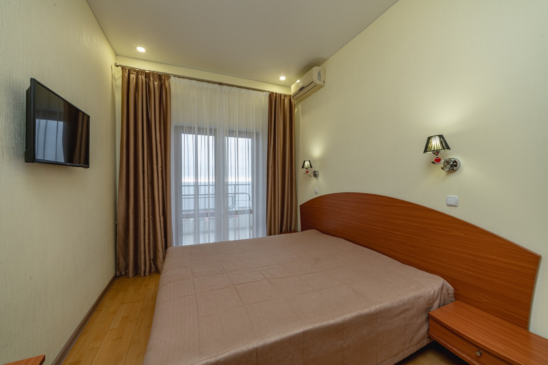 - 2-местный 1-комнатный Стандарт Север / Юг. В номере: двуспальная кровать, санузел с душем, телевизор, холодильник, бойлер, кондиционер, балкон.