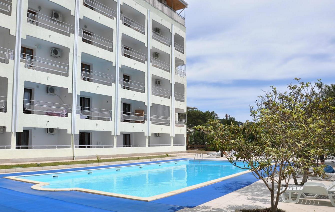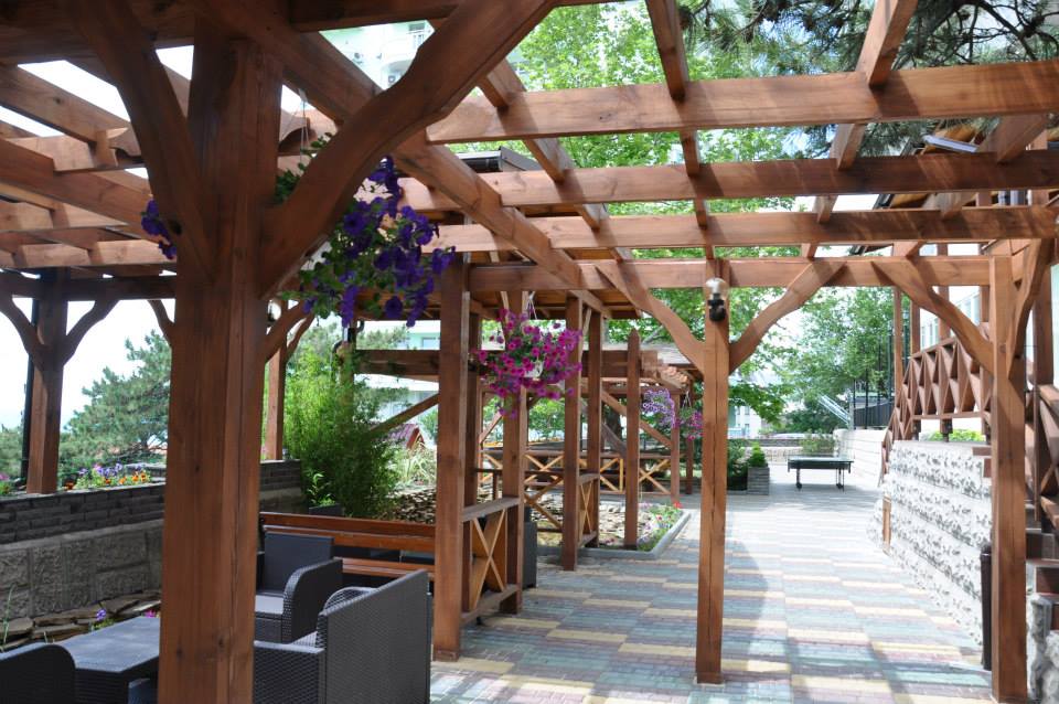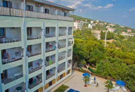 Пляж: галечный, арендованный, расположен за территорией в 300 м от пансионата, можно спустится пешком по парковой зоне или на микроавтобусе (входит в стоимость). На верхней территории пляжной зоны расположены бары, выносная торговля в палатках мороженым, прохладительными напитками, свежими морепродуктами, сувенирами, курортными товарами.